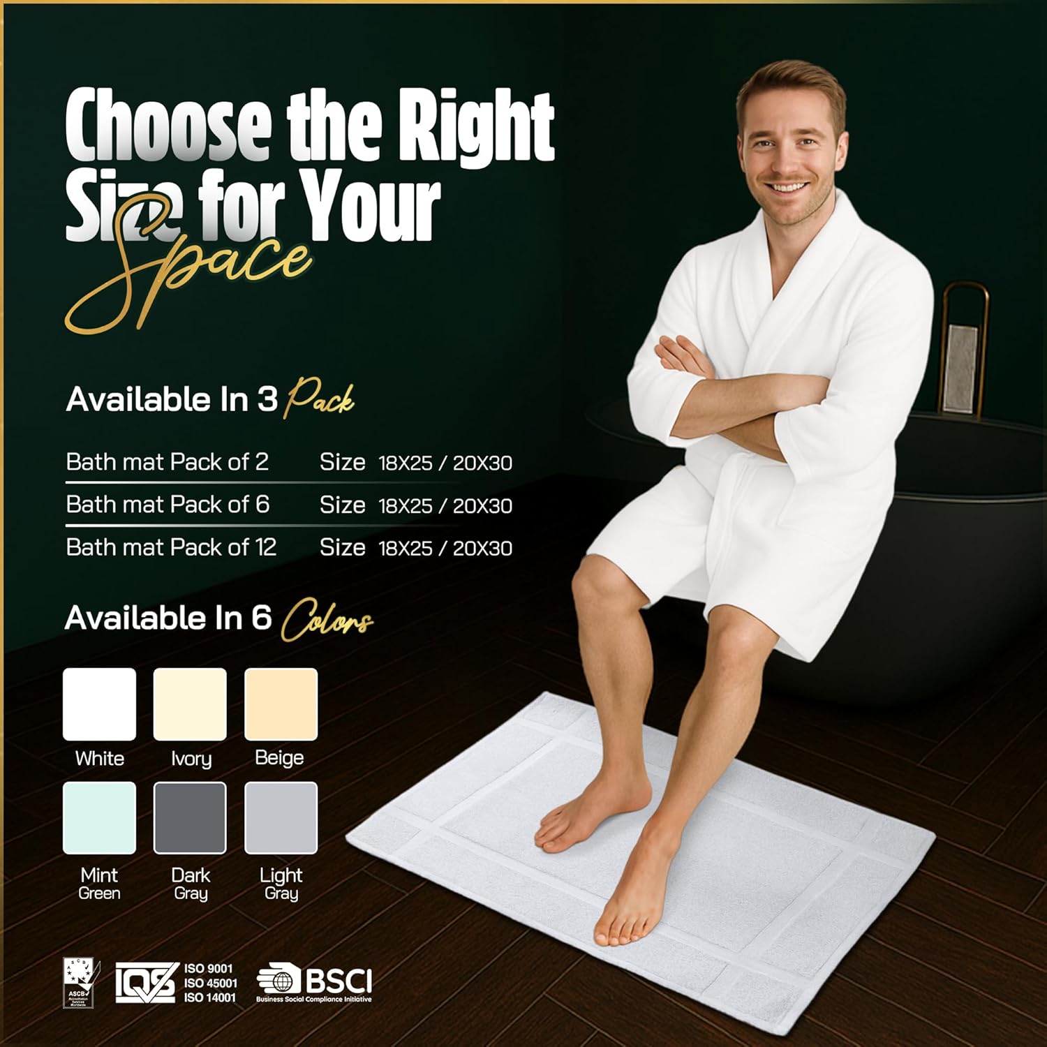 - 100% Cotton Bath Mats – Ultra Soft & Absorbent Made from premium 100% cotton, these bath mats for bathroom provide exceptional softness and high absorbency. Perfect as a tub mat or outside shower mat to keep your feet dry and floor clean.