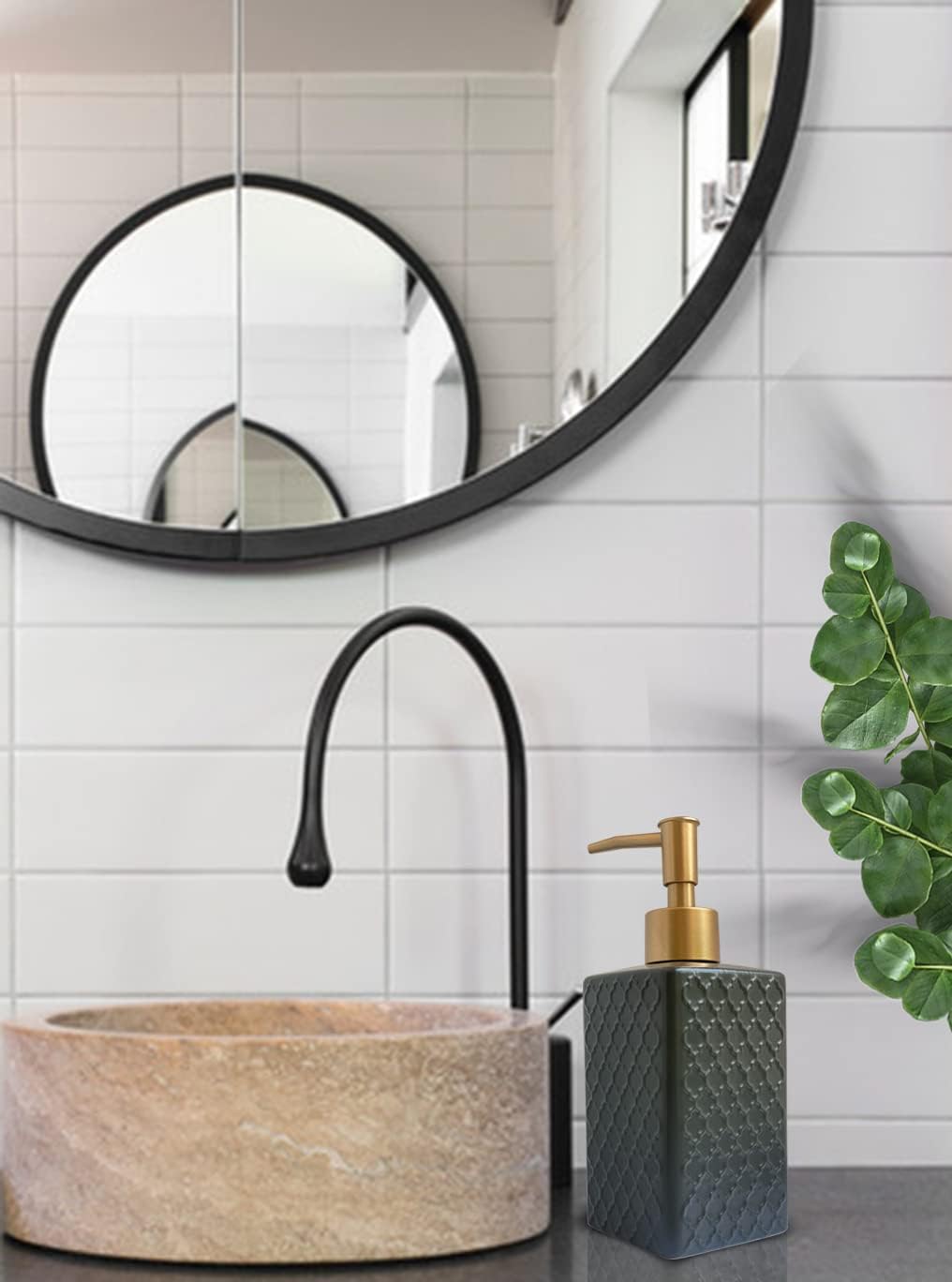 Gold Soap Dispenser for Bathroom,Retro Black Square Lotion Dispenser, Refillable Countertop Ceramic Hand Soap Dispenser,Dish Soap Dispenser for Kitchen 350ml