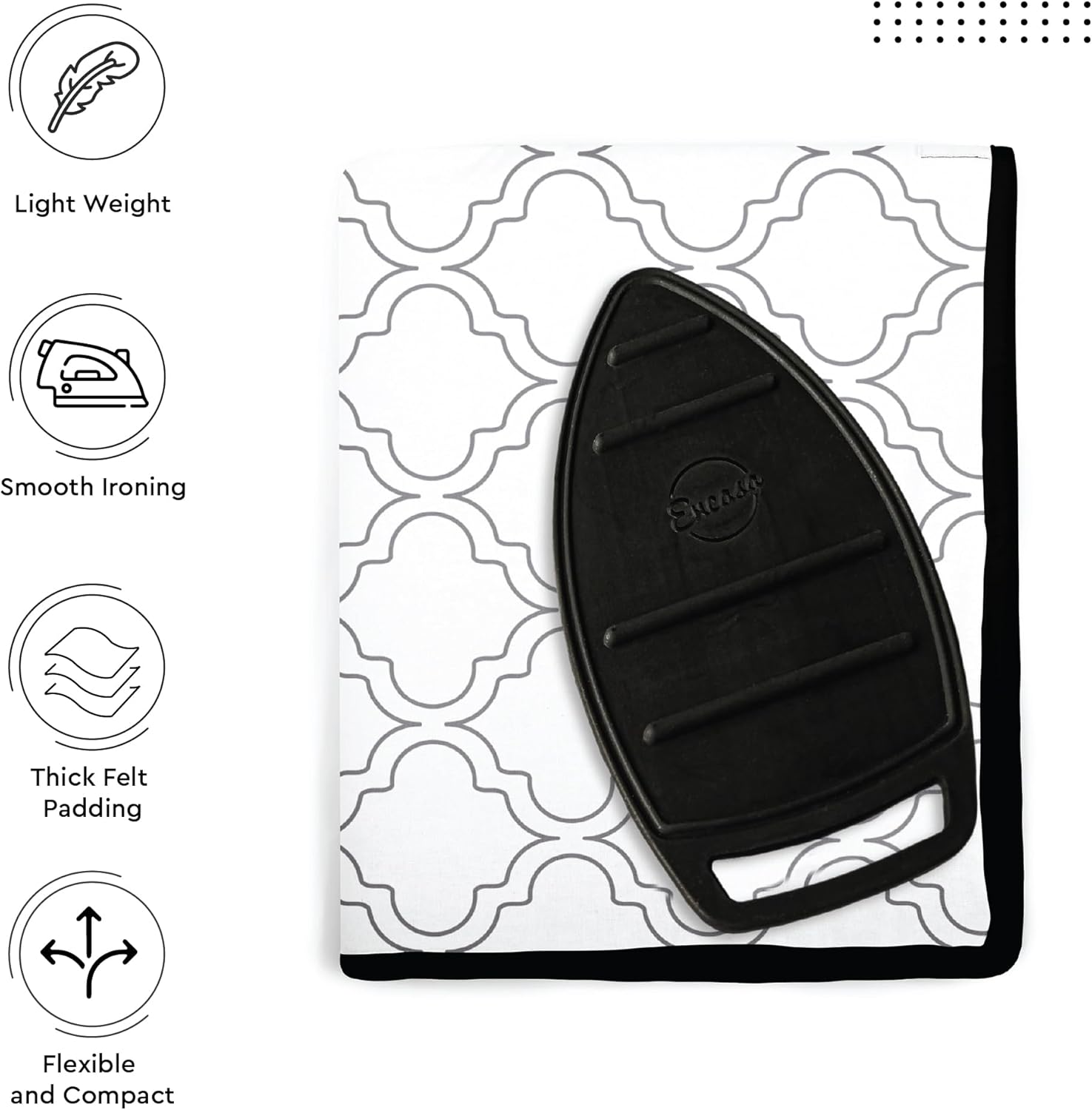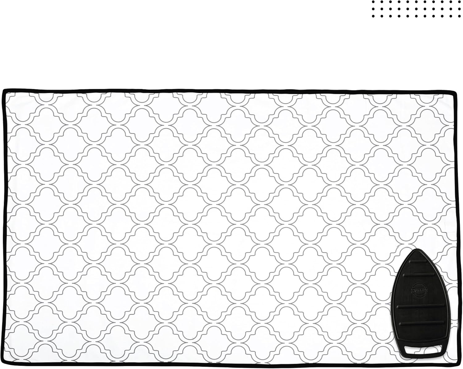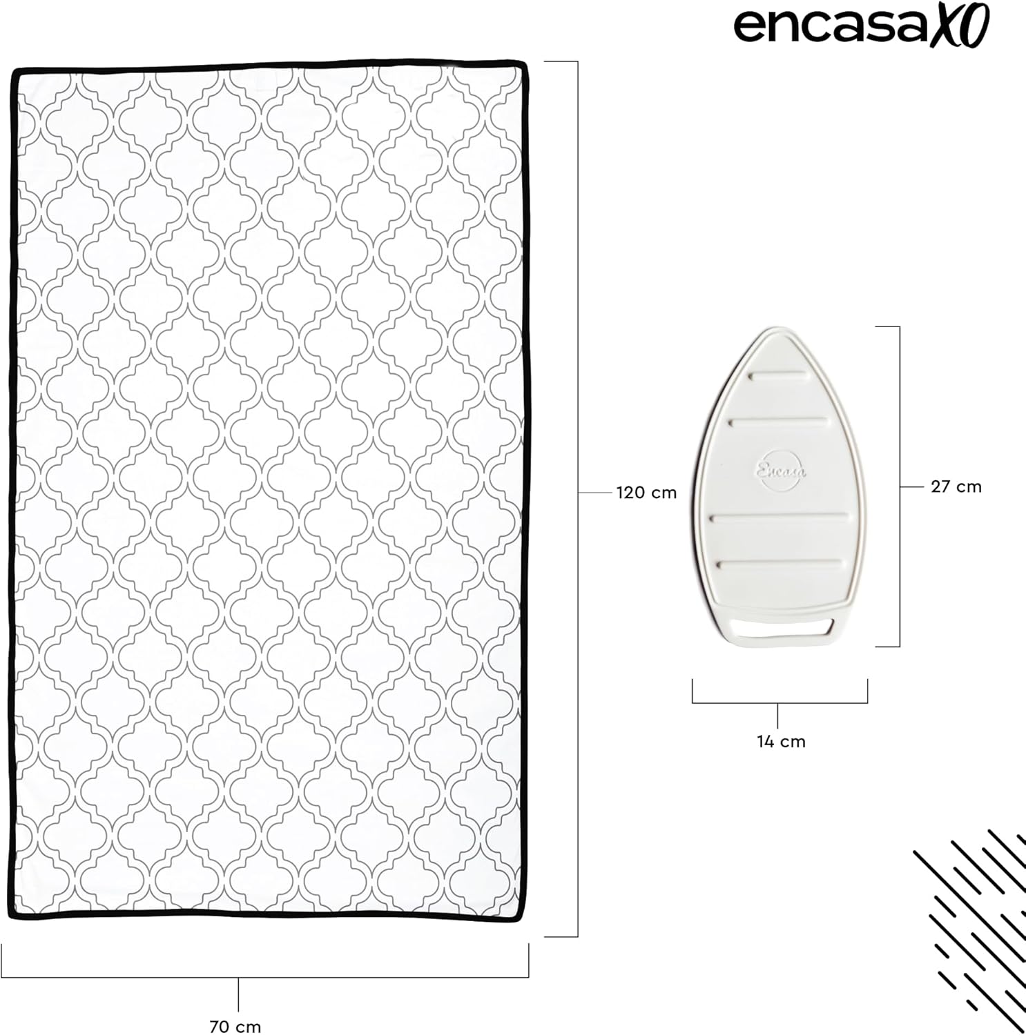Encasa XO Ironing Mat/Pad (Large 48"x28") with 3mm Padding & Silicone Iron Rest for Steam Pressing on Tabletop or Bed - Heat Resistant, Portable, Quilting & Travel Blanket - White Tiles
