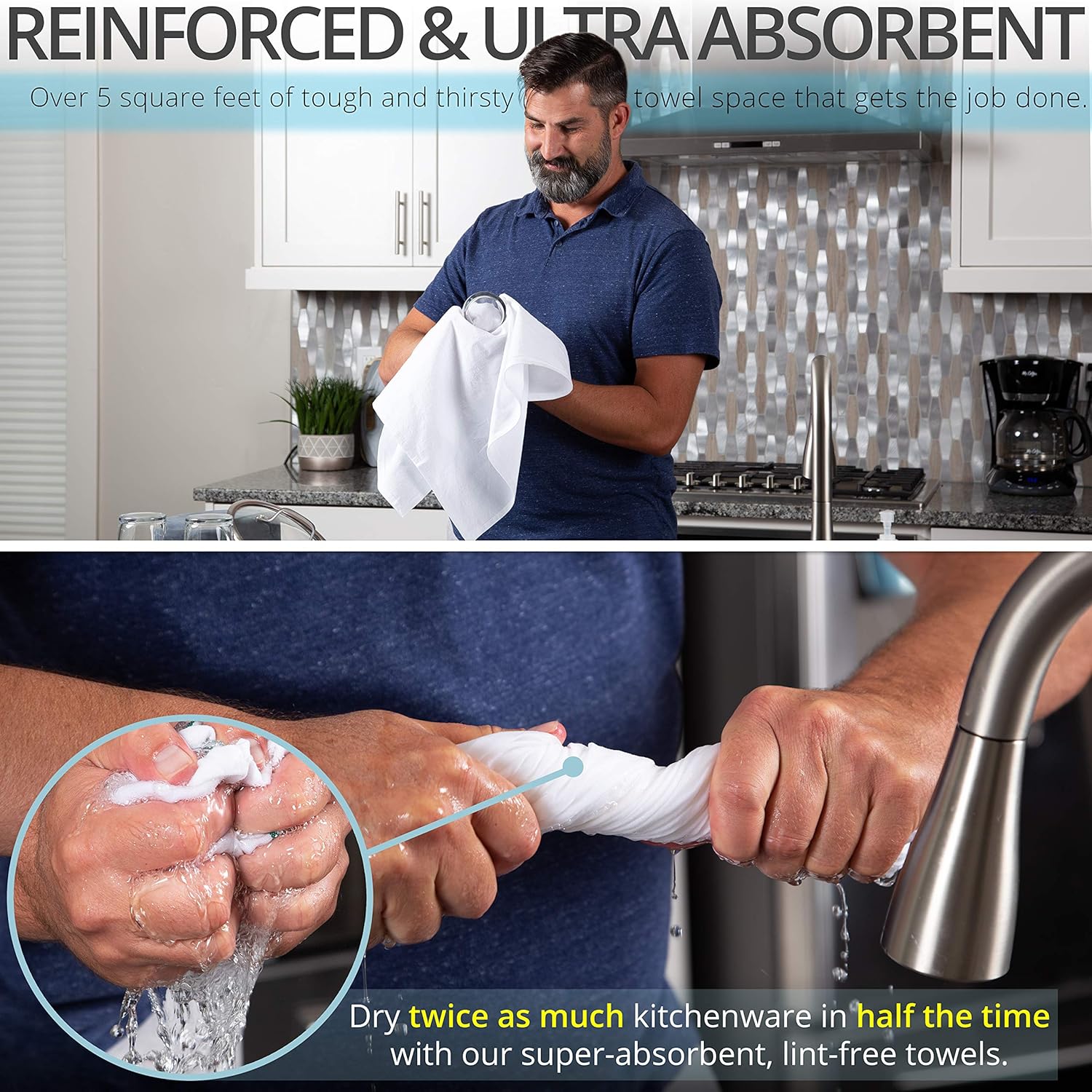 - ✅ POWERHOUSE DISH CLOTH - Each dish towel is woven using a state-of-the-art Air Jet Loom, which lets us use better fabric with a tighter weave, satisfying heft, softer texture, and brighter finish.