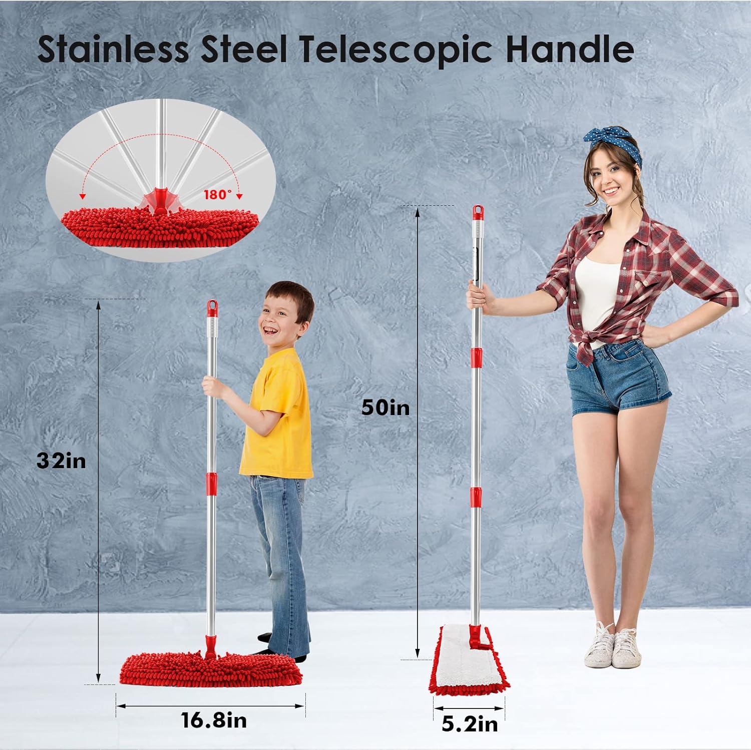 - Expandable Telescopic Handle: This mop has stainless steel telescopic handle, the longest length can reach to 52". The telescopic handle can be adjusted according to your purpose. Stretching to the shortest length of 33" is very suitable for children's height.