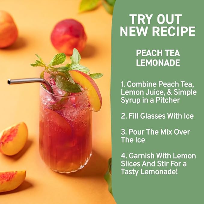 - CAFFEINE-FREE FRUITY TEA - Experience the vibrant flavors of our premium blend of peach extracts, hibiscus, cinnamon, cloves, rose petals, and ginger. This caffeine-free fruity tea not only delights your taste buds but also provides a nutritious boost. Presented in round eco-conscious tea bags, it offers a guilt-free indulgence in the form of a flavorful cup of tea.
