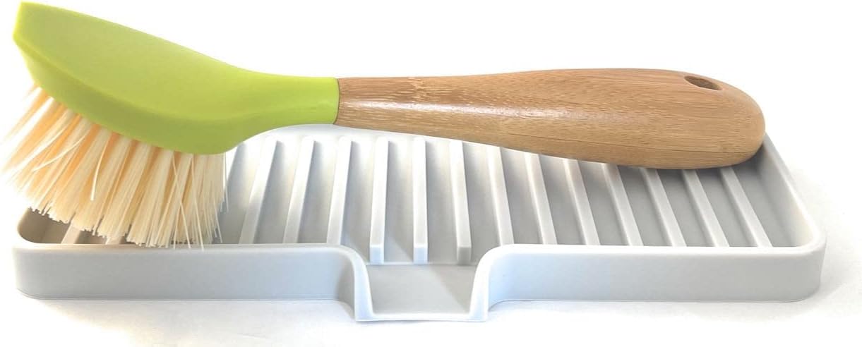 - A More Hygienic Home | A dedicated space for your dishwashing supplies, bathroom sink items, shower niche/shelf items. Tray and drain chute are slightly sloped to help funnel excess water away. Thick, sturdy base stays in place without suction while raised lines promote air flow, so items dry faster and are less prone to developing nasty odors.