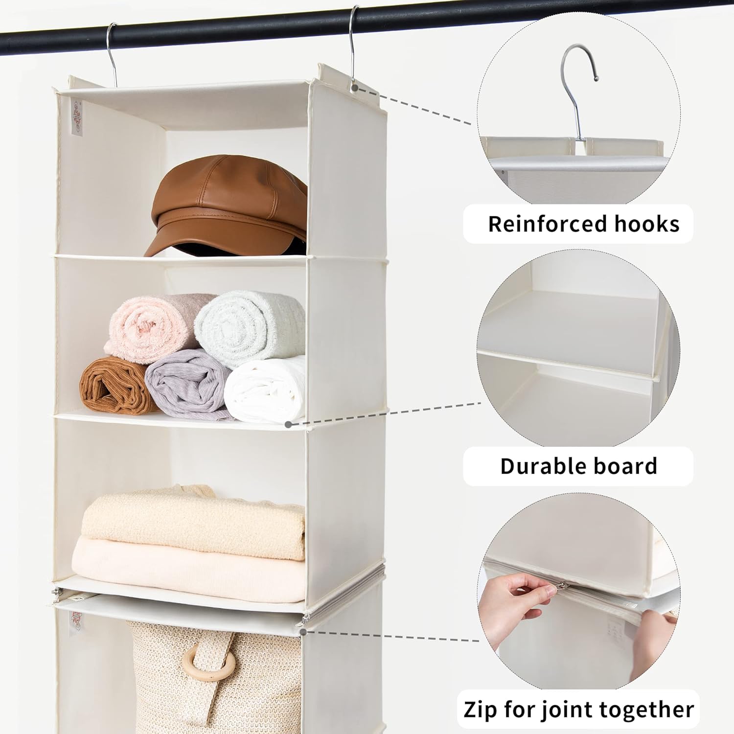 GRANNY SAYS 6-Shelf Hanging Closet Shelves, Separable to 2 Pack 3-Shelf Closet Shelves Organizer, Hanging Organizers and Storage for Living Room, Beige
