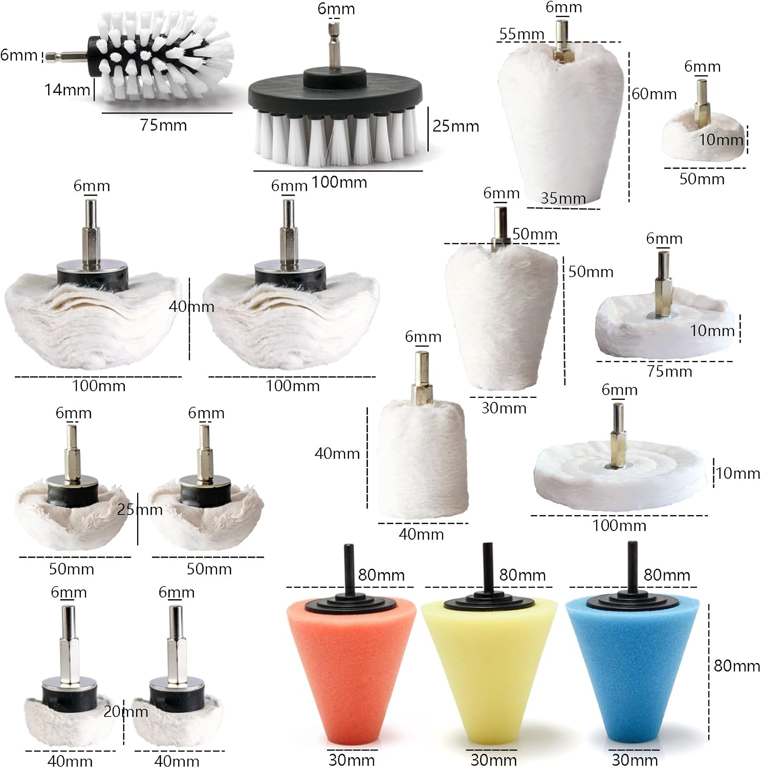 - PERFECT FIT:Reusable and effectively restore the surface gloss, with the use of polishing paste leaves an invisible and persistent protective film with a mirror effect.apply to automotive glass ,car buffer wheel ,exhaust pipe, car polishing wheel. This drill buffing kit can be used for metal aluminum stainless steel chrome wood plastic ceramic glass woods etc.