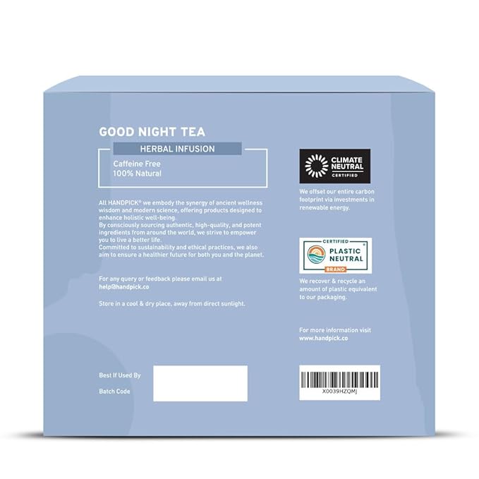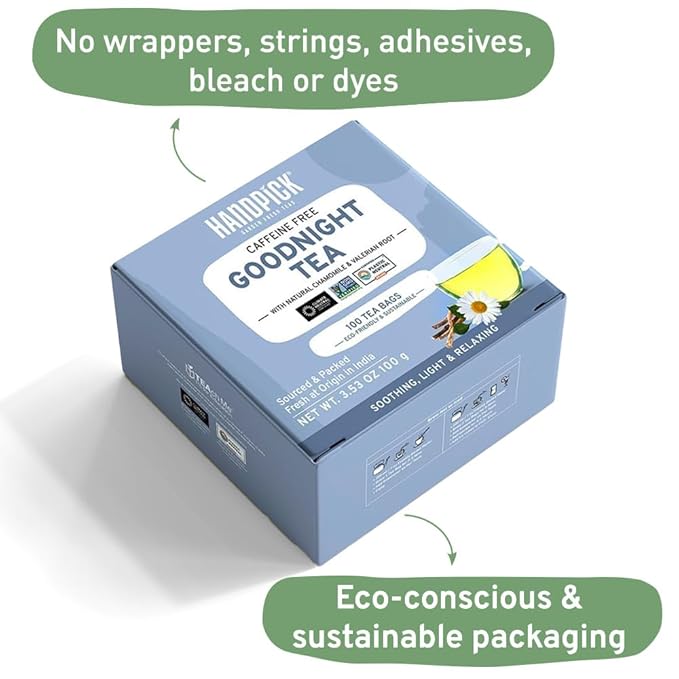 HANDPICK, Good Night Tea Bags (100 Count) Night Time Herbal Tea | Caffeine Free | Floral Blend - Lavender, Chamomile, Peppermint | Natural Tea, Perfect for Bedtime