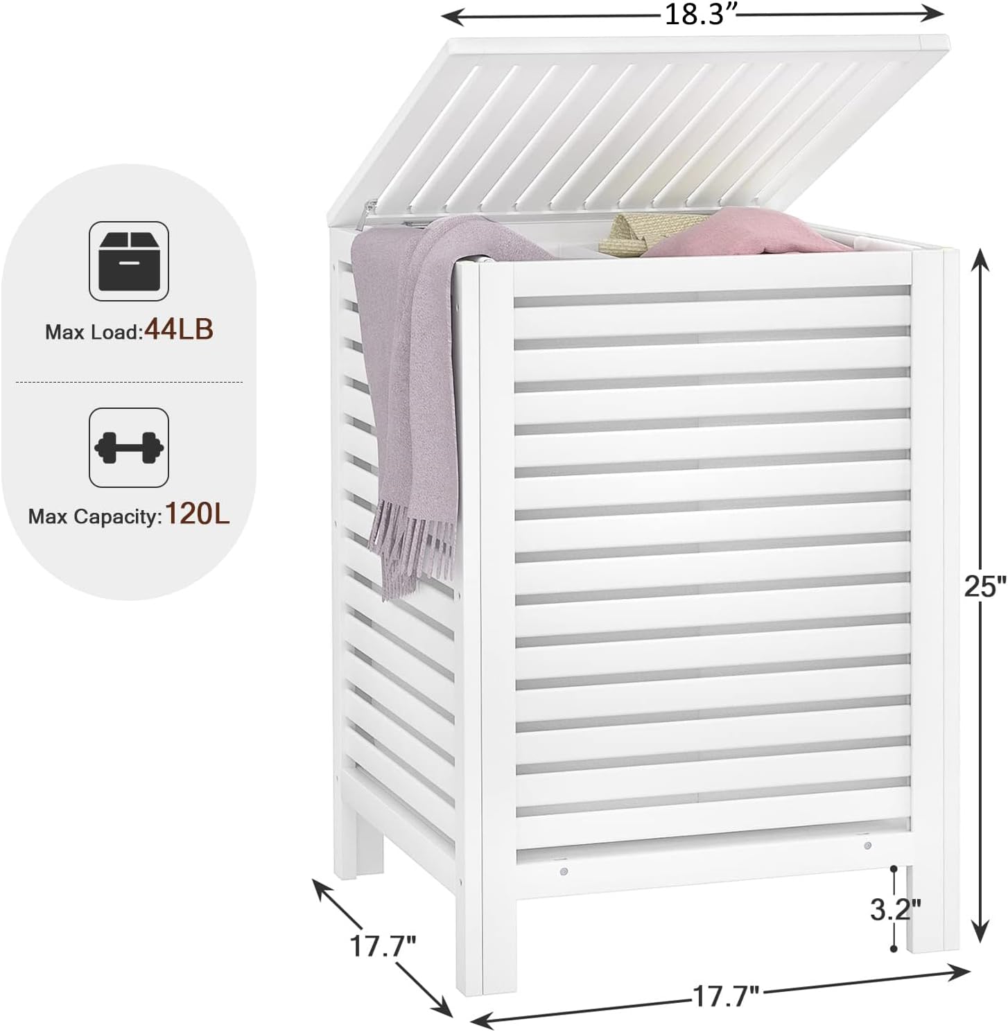 Homykic Bamboo Laundry Hamper with Lid, 120L Large Clothes Laundry Sorter with Removable 2-Section Liner Bag, Raised Laundry Basket Organizer for Clothing, Bathroom, Bedroom, Laundry Room, White