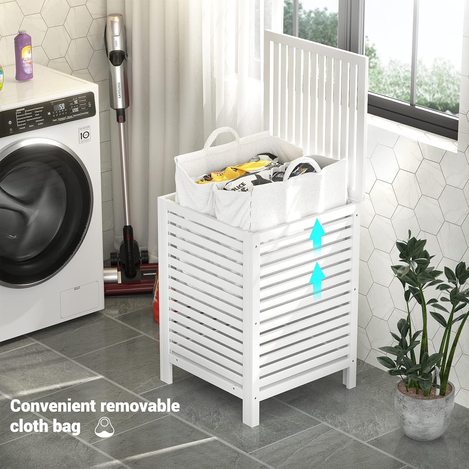 - REMOVEABLE LINER BAG - Stable bamboo construction will outlast loads of laundry, the divided liner bag is removable. When itโs time to do the laundry, just lift the lid and take out the inner bag, the bamboo laundry basket itself can stay where it is, as a decorative detail for any room. Removable liner bag with handles makes it easy to move this laundry basket from room to room. Please do not put the liner bag into the washing machine, it cannot be used as a laundry bag.