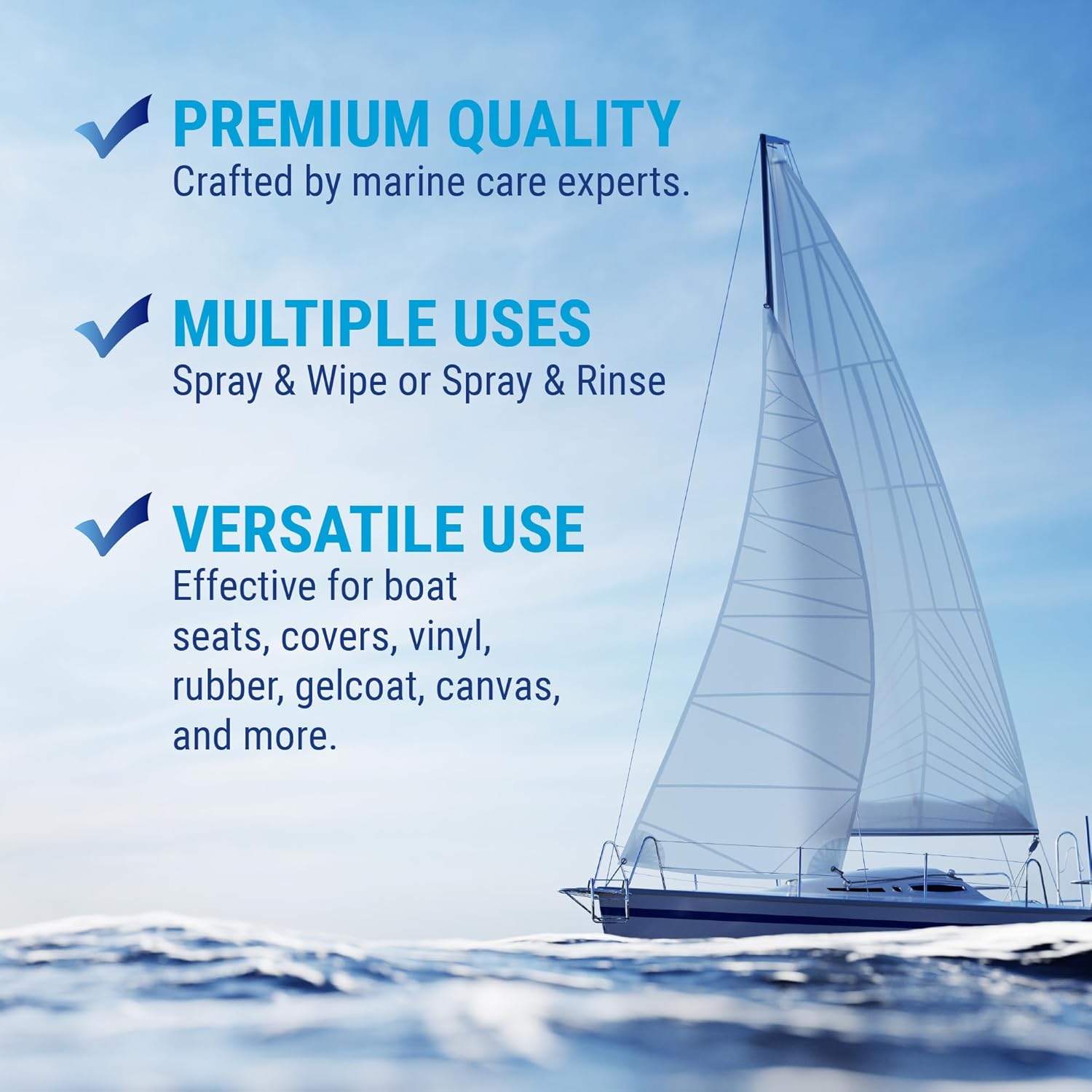 - VERSATILE APPLICATION: Ideal for use on boat interiors, vinyl cushions, fenders, life jackets, sails, etc. Make your vinyl boat seats, covers, cabin, deck, bumpers and more squeaky clean! Just donβt use on fabric or textile.