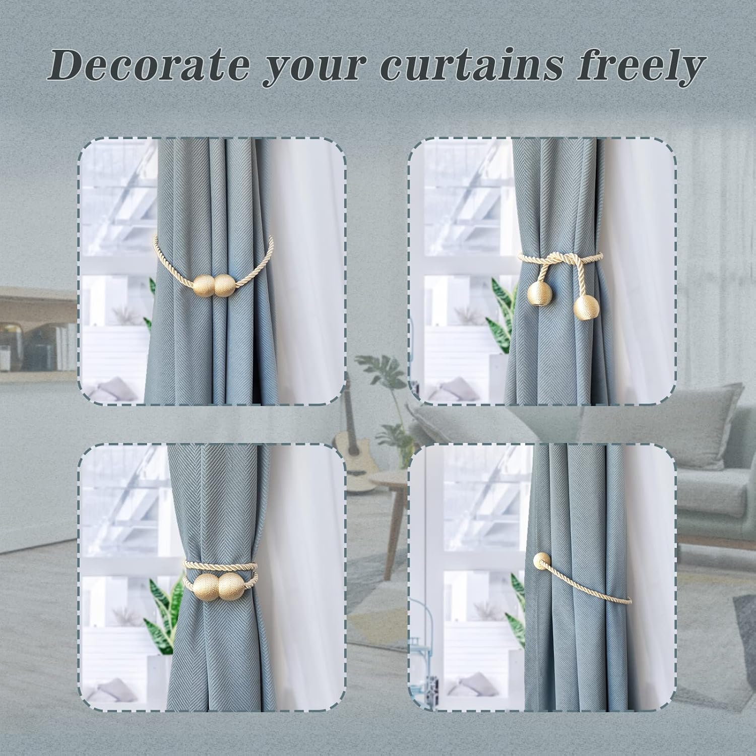 - š[Upgrade Powerful Magnetic] Our magnetic curtain tiebacks magnets use high-end new imported nickel-plated magnets, more magnetic than ordinary magnetic, the upgraded magnets are also less prone to rusting, with strong corrosion resistance and durability. The rope of curtain tie adopts thickened solid polyester yarn, which is not only durable, but also not easy to wear or pilling.
