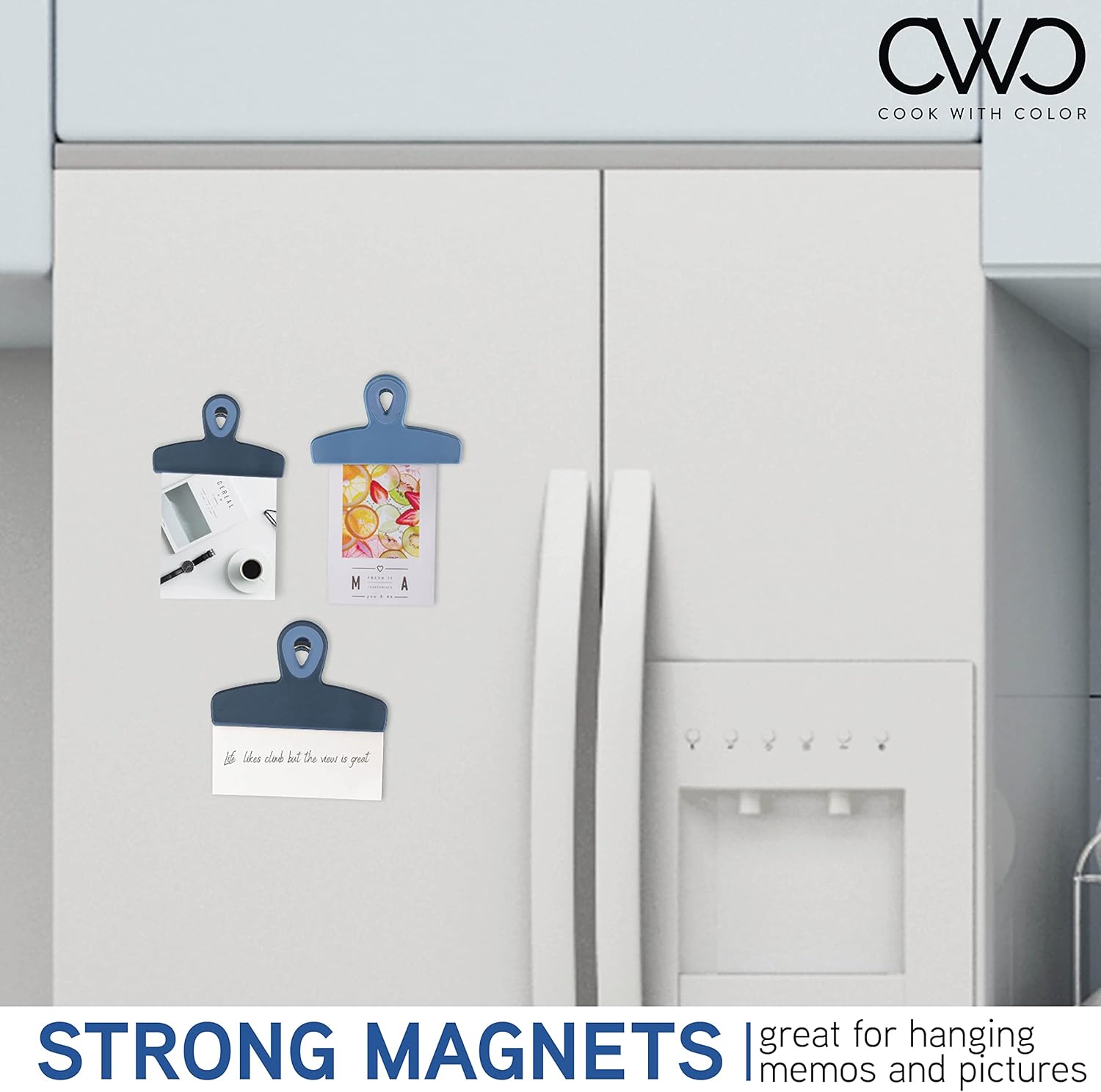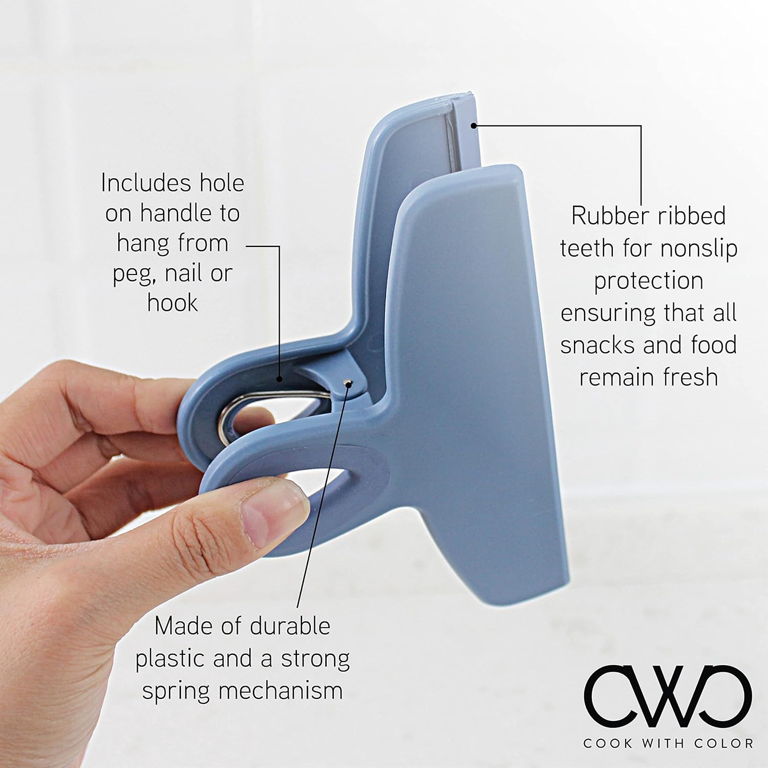 COOK WITH COLOR Bag Clips - Heavy Duty Chip and Refrigerator Magnet Clips for Food Storage with Air Tight Seal Grip, Denim, Pack of 4 Large