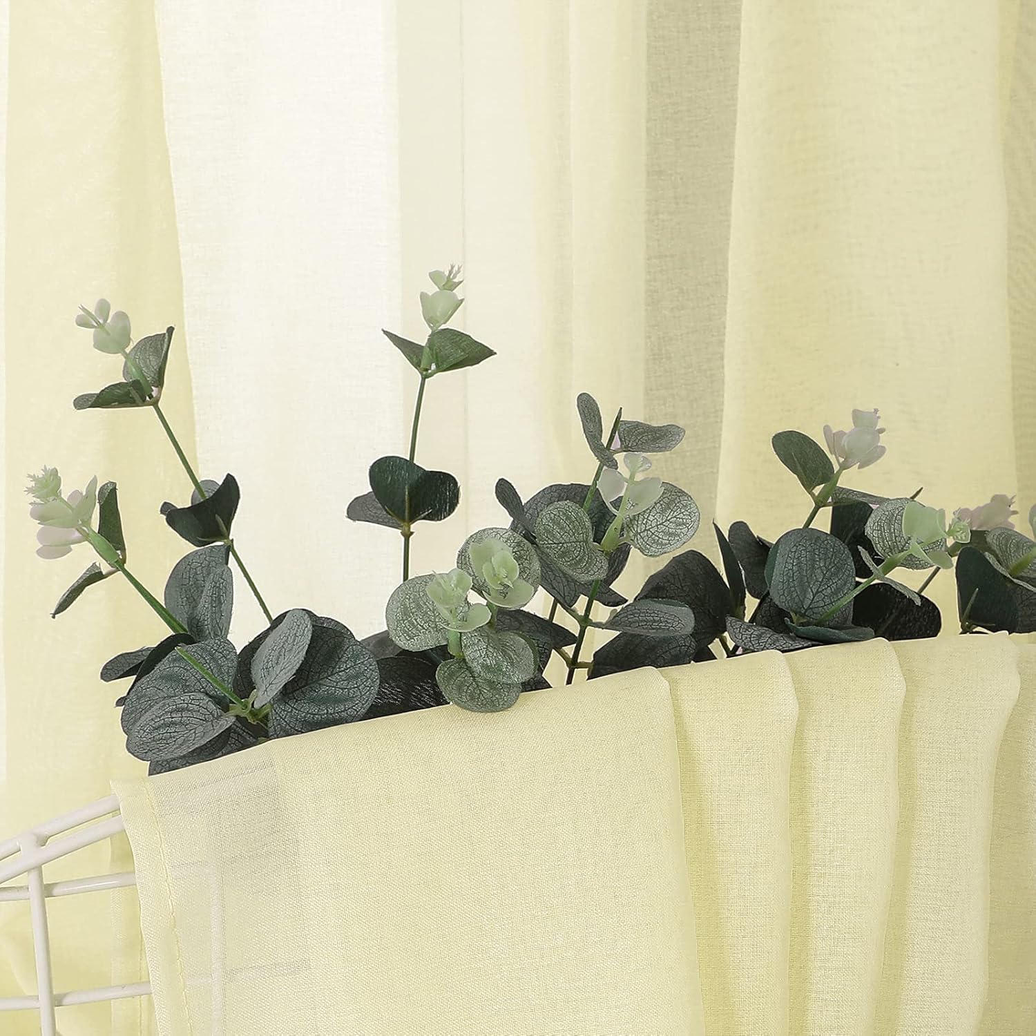 Tollpiz Short Sheer Curtain Linen Textured Living Room Curtains Sheer Light Filtering Rod Pocket Voile Curtain for Bedroom, 42 x 54 inches Long, Transparent Yellow, Set of 2 Panels