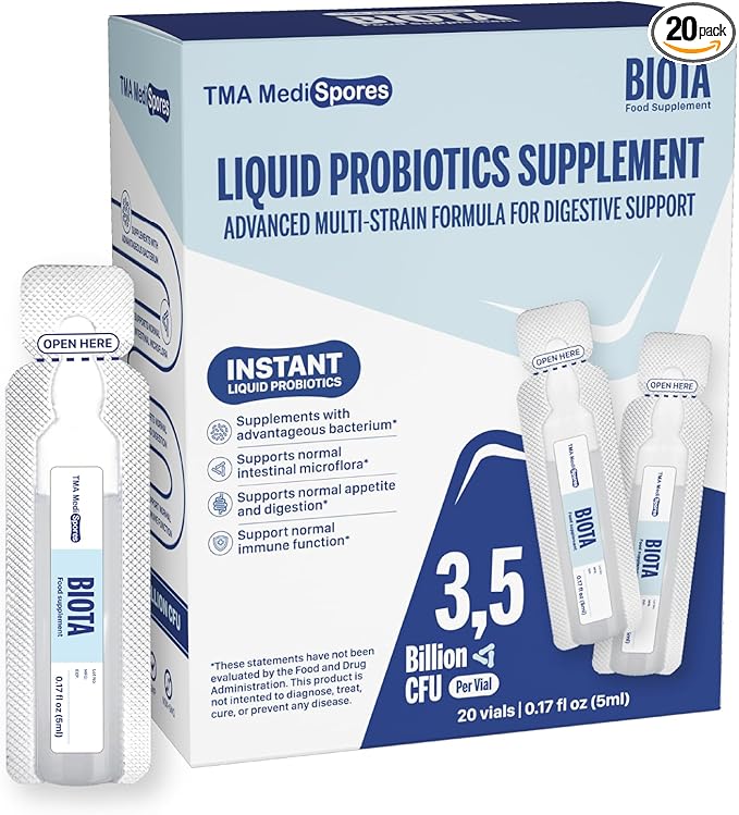 - ❤️ Daily probiotics for digestive health: BIOTA Digestive Advantage Daily Probiotics Drink focuses on your specific digestive health needs with continued use and gives you long-term digestive support. Each 5ml tube contains 3.5 billion beneficial probiotics to keep your digestive system balanced by maintaining healthy gut microflora. It also helps with occasional digestive upset, including indigestion, bloating, irregular or frequent bowel movements, abdominal discomfort, and loss of appetite.
