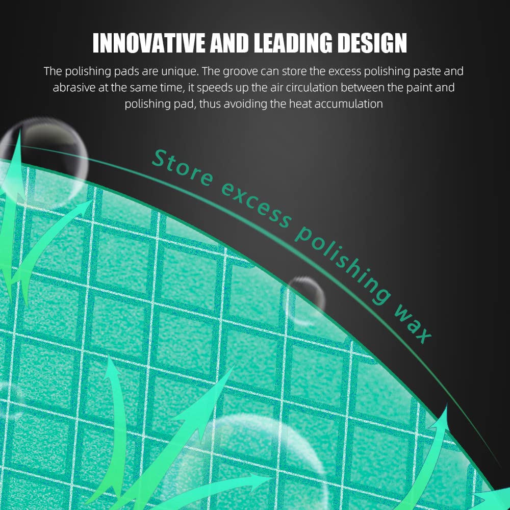 - [Innovative design] The groove can store excess polishing paste and abrasives; at the same time, it speeds up the air circulation between the paint and the polishing pad and avoids the accumulation of heat;
