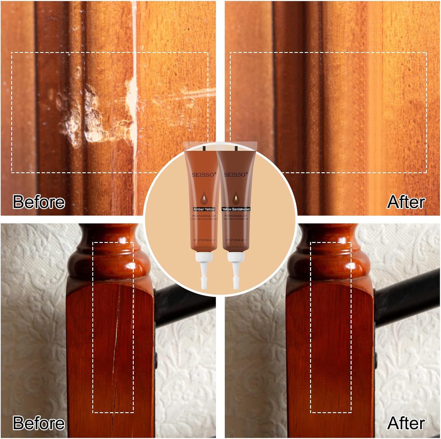 - 【WIDE COMPATIBILITY】: Restore all kinds of damages, such as scratches, chips, cracks, holes and discoloration on wooden floors, doors and furniture like desks, chairs, beds, wardrobes, bookcases, cabinets, wooden crafts and many more.