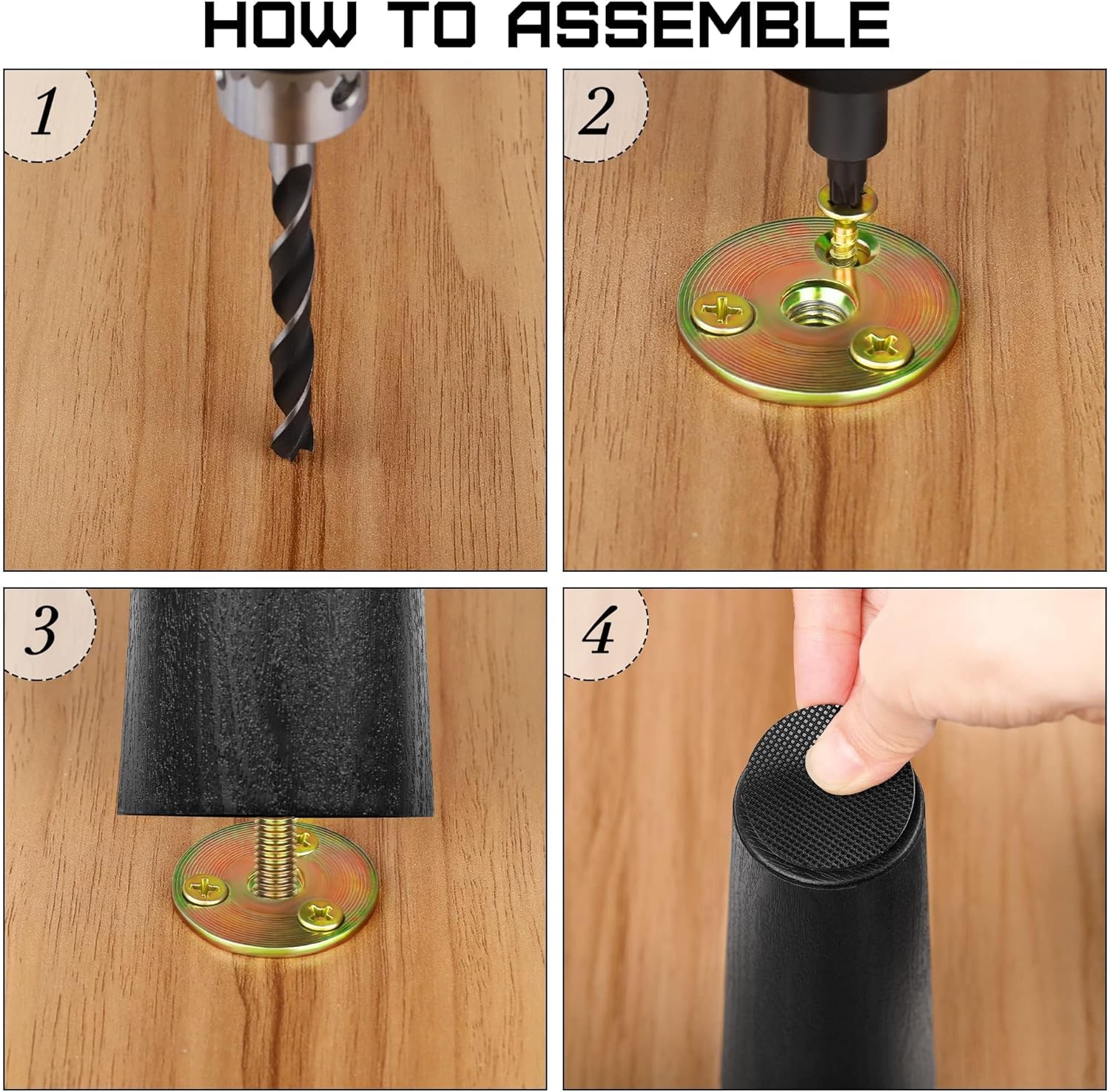 - Sufficient quantity: you will receive 8 packs of black sofa legs, 8 packs of M8 T-nuts, 24 pieces of metal screws, and 8 pieces of anti-skid pads; all accessories are complete for easy installation (Note: the maximum load-bearing capacity of the 4 furniture legs is 250 kg)