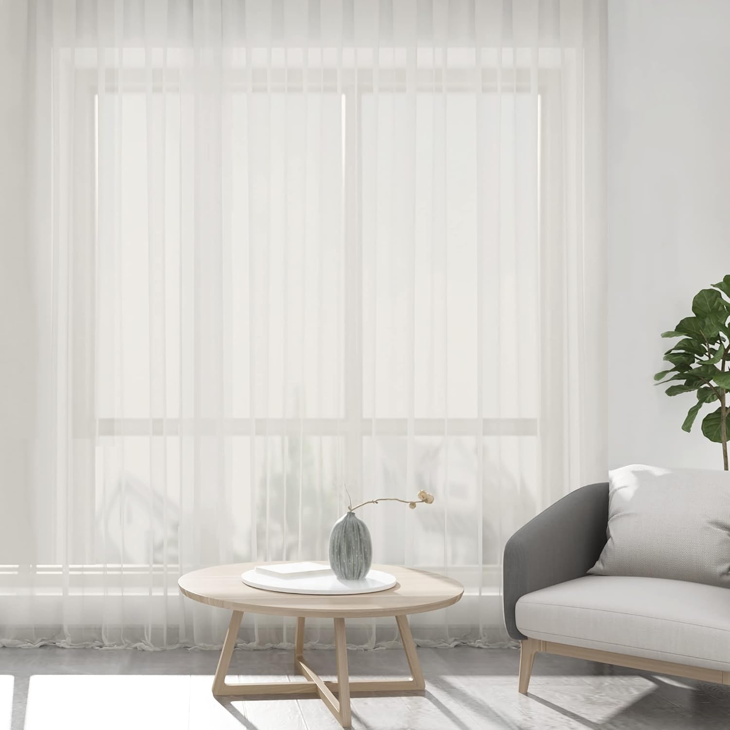 Chyhomenyc Sheer Curtains 120 Inch Extra Long, 2 Pieces, Rod Pocket Top Soft Voile Texture Window Draperies Lightweight & Airy Panels for Living Room/Bedroom, Each 42W x 120L inches, Ivory
