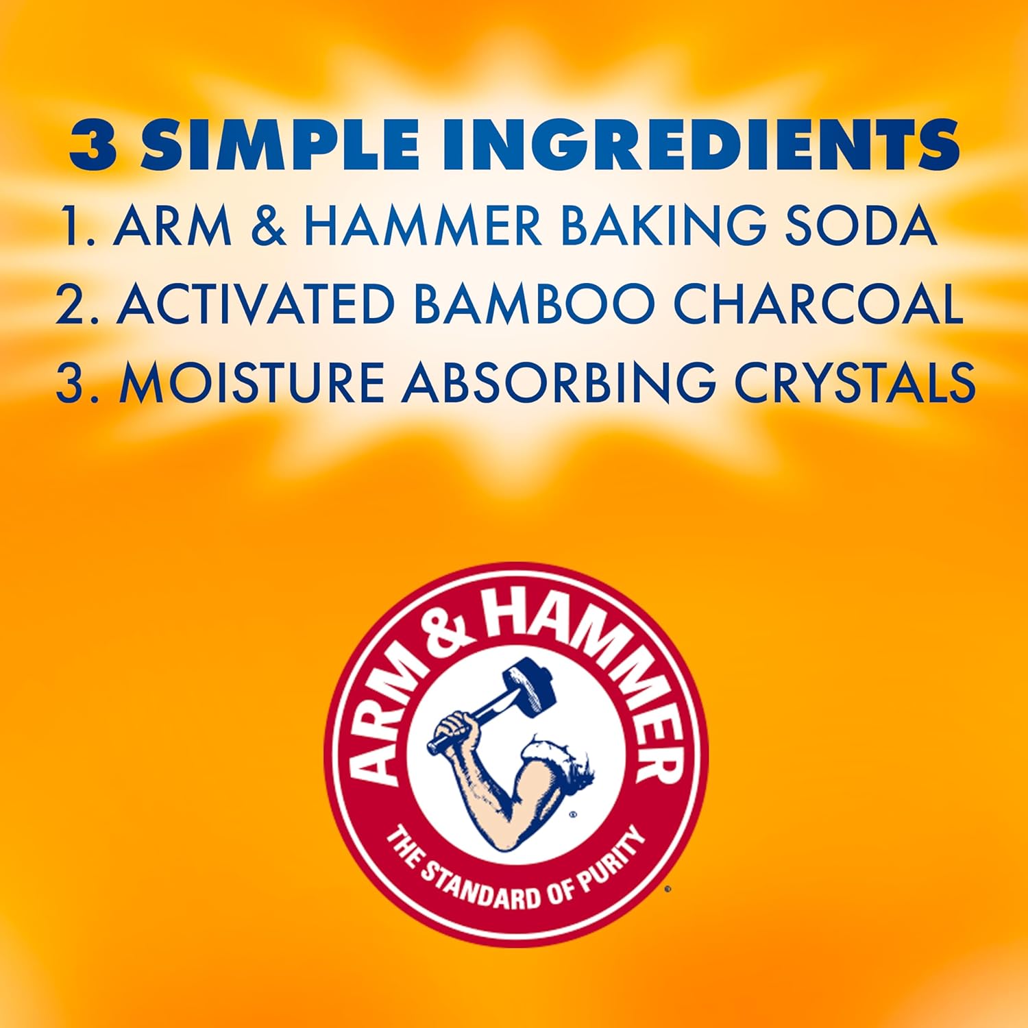 - 3 SIMPLE INGREDIENTS: This humidity absorber and musty odor eliminator is powered by 3 simple ingredients: Arm & Hammer Baking Soda, activated bamboo charcoal and calcium salts.