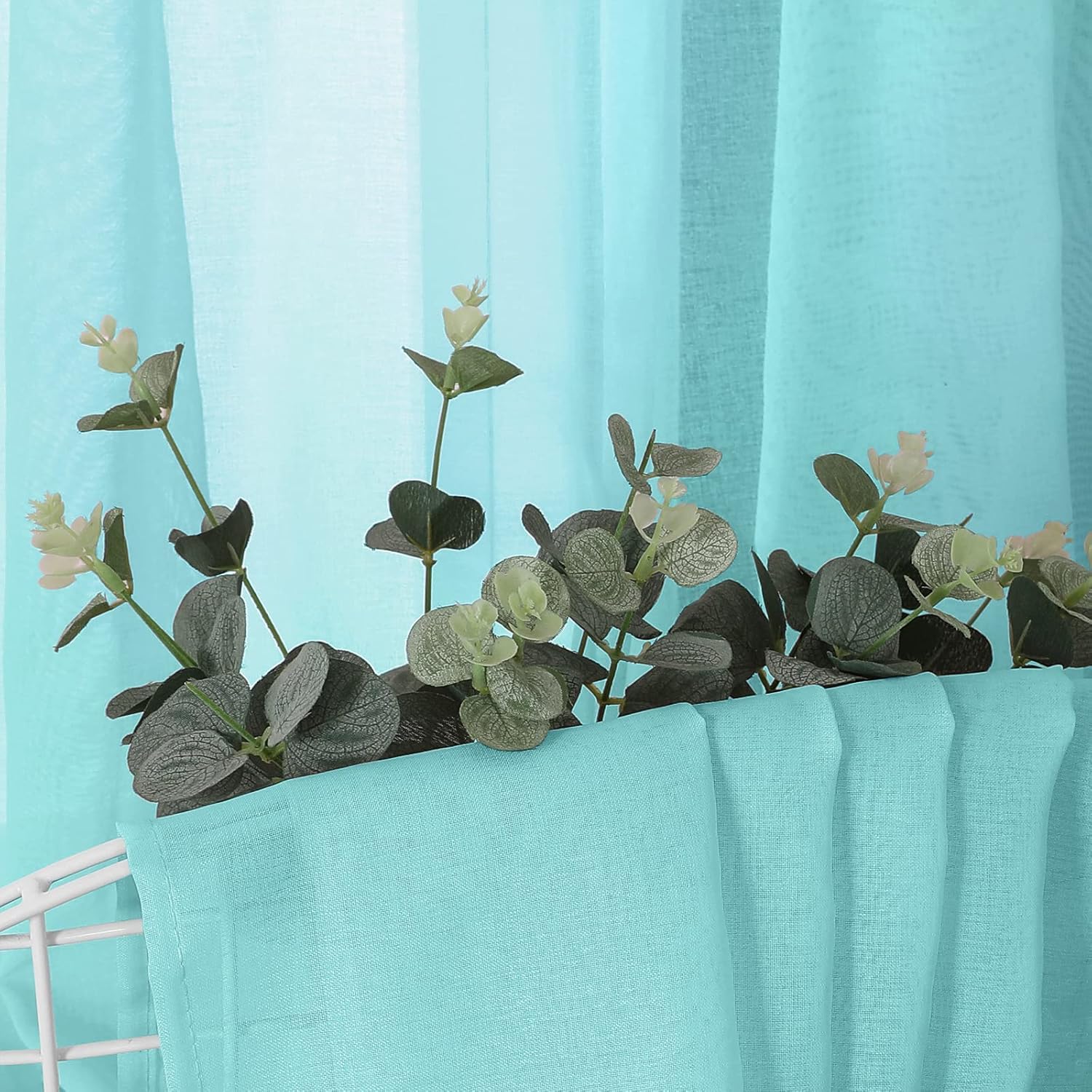 Tollpiz Sheer Curtains Linen Textured Living Room Curtain Sheers Light Filtering Rod Pocket Voile Curtains for Bedroom, 42 x 63 inches Long, Crystal Blue, Set of 2 Panels
