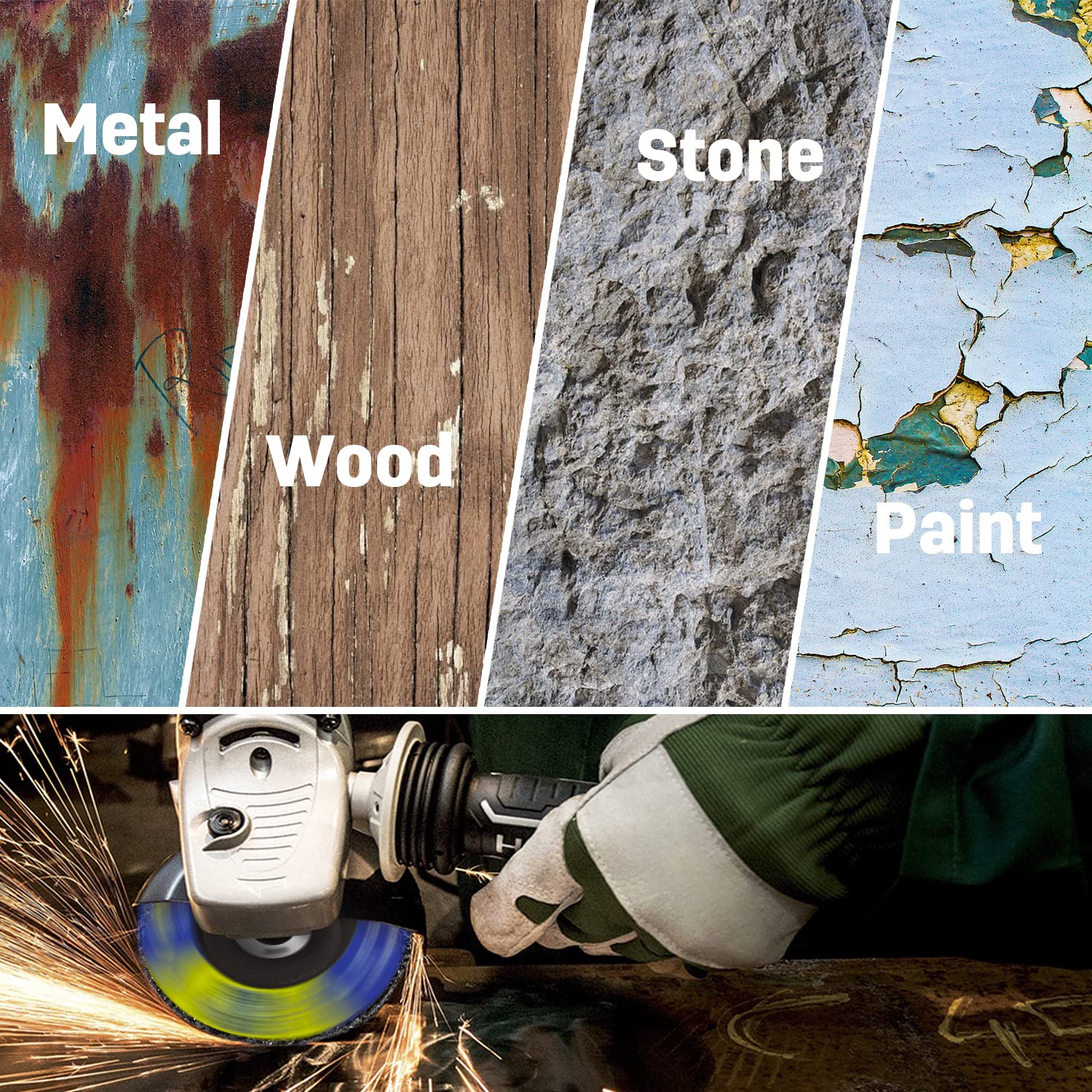 - 【Specifications】With a diameter of 4 inches, thickness of 3/5 inches, a 5/8-inch aperture, and a maximum speed of 13300 RPM, it is compatible with 4-inch angle grinders, Please note that it is not suitable for Wagner Paint Eater or drills.