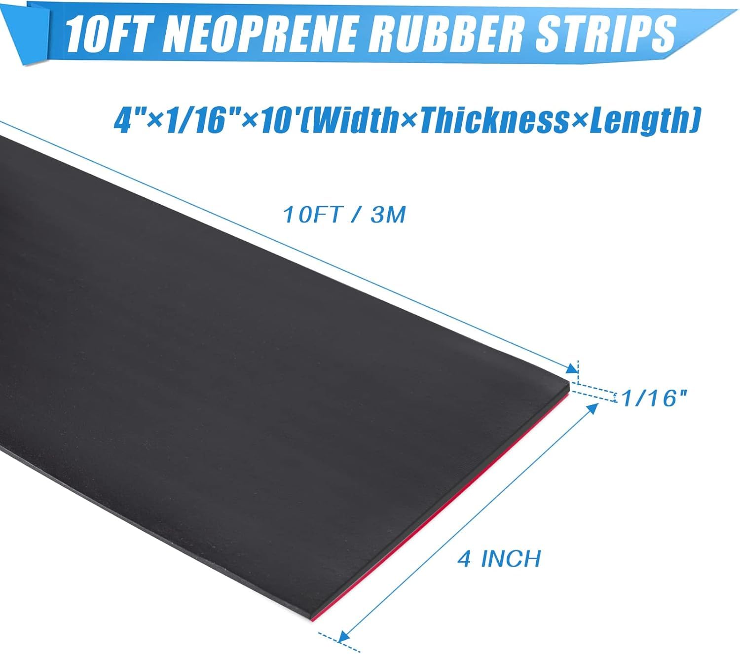 Adhesive Rubber Strips Neoprene Sheets, Rolls & Strips with Adhesive Backing Rubber Pads Self Stick Seal Gasket Sticky Back for Matting Padding - 4" Wide x 1/16" Thick x 10' Long