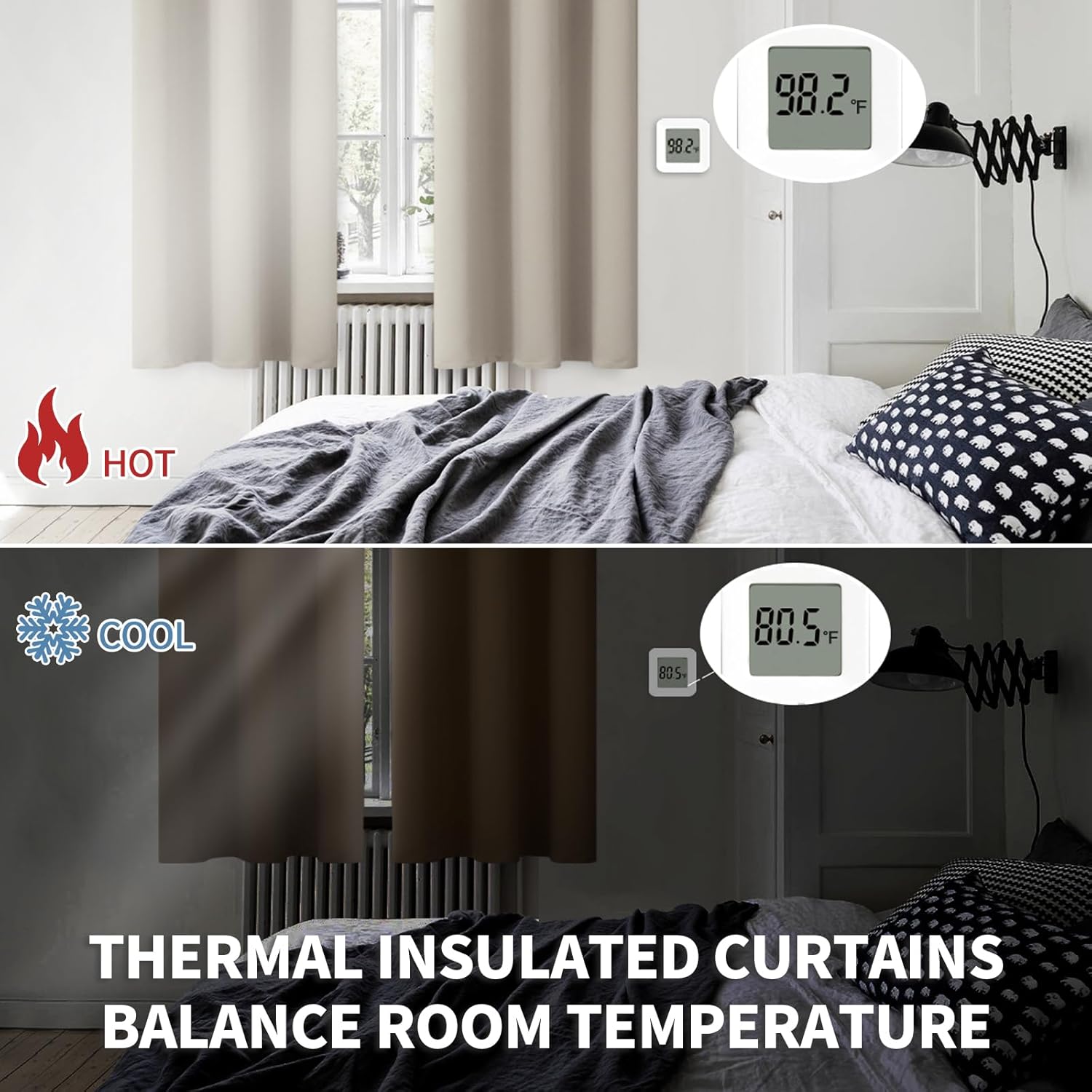 - Package Includes: Set of 2 light camel blackout curtains; each panel measures 52 Inch wide by 63 Inch long.
