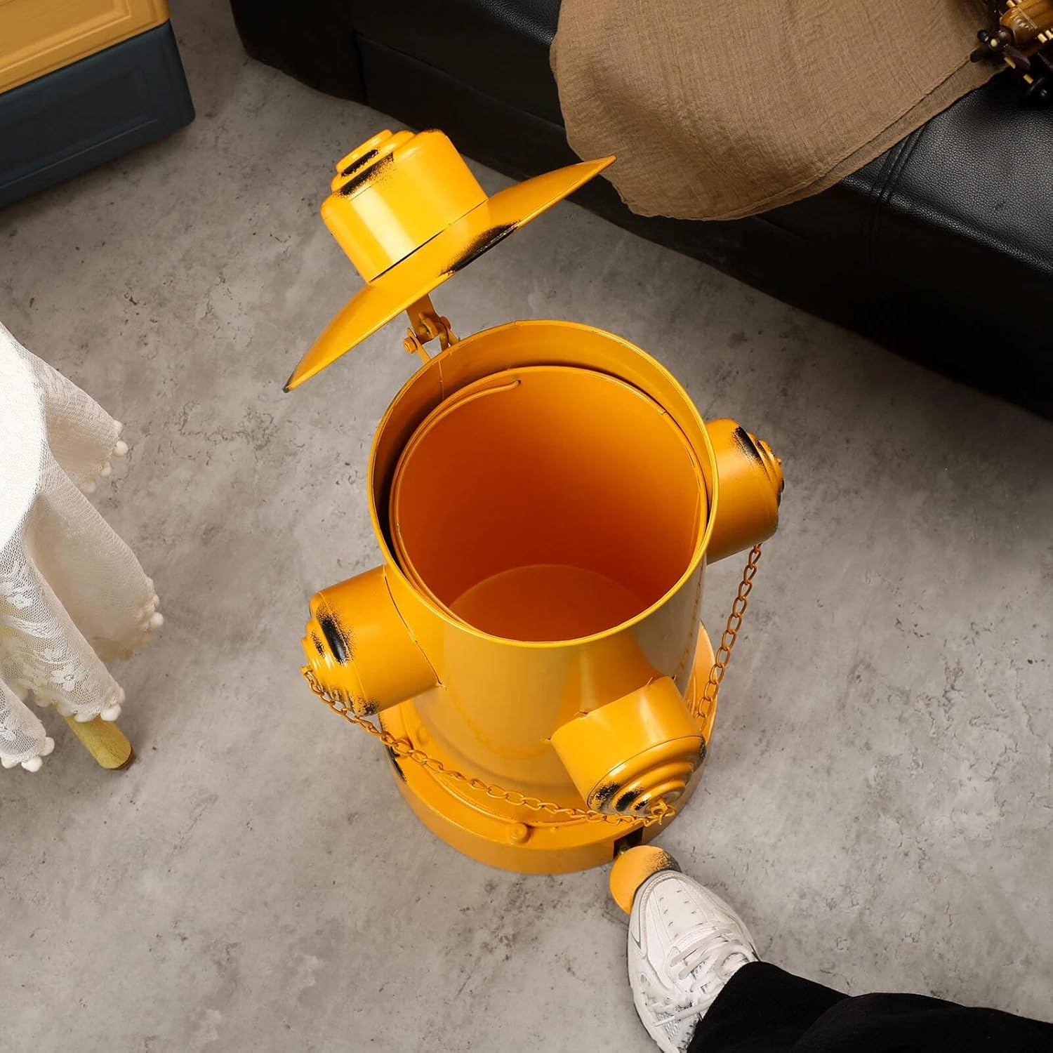 Hoolerry Fire Hydrant Trash Can Retro Creative Garbage Can with Inner Bucket Large Capacity Wrought Iron Pedal Trash Can Indoor Outdoor Waste Bins for Park Garden Kitchen Garbage (Yellow, Medium)