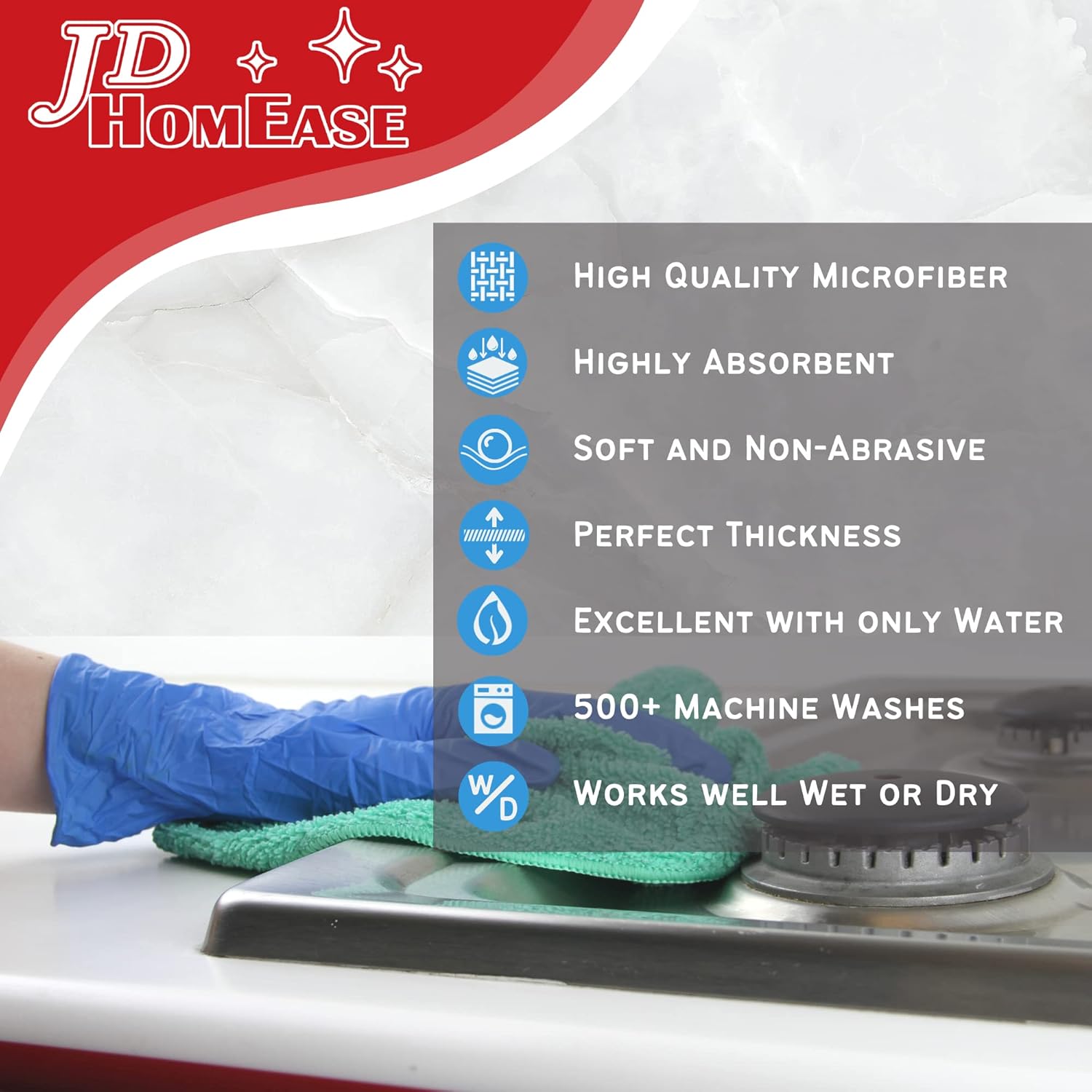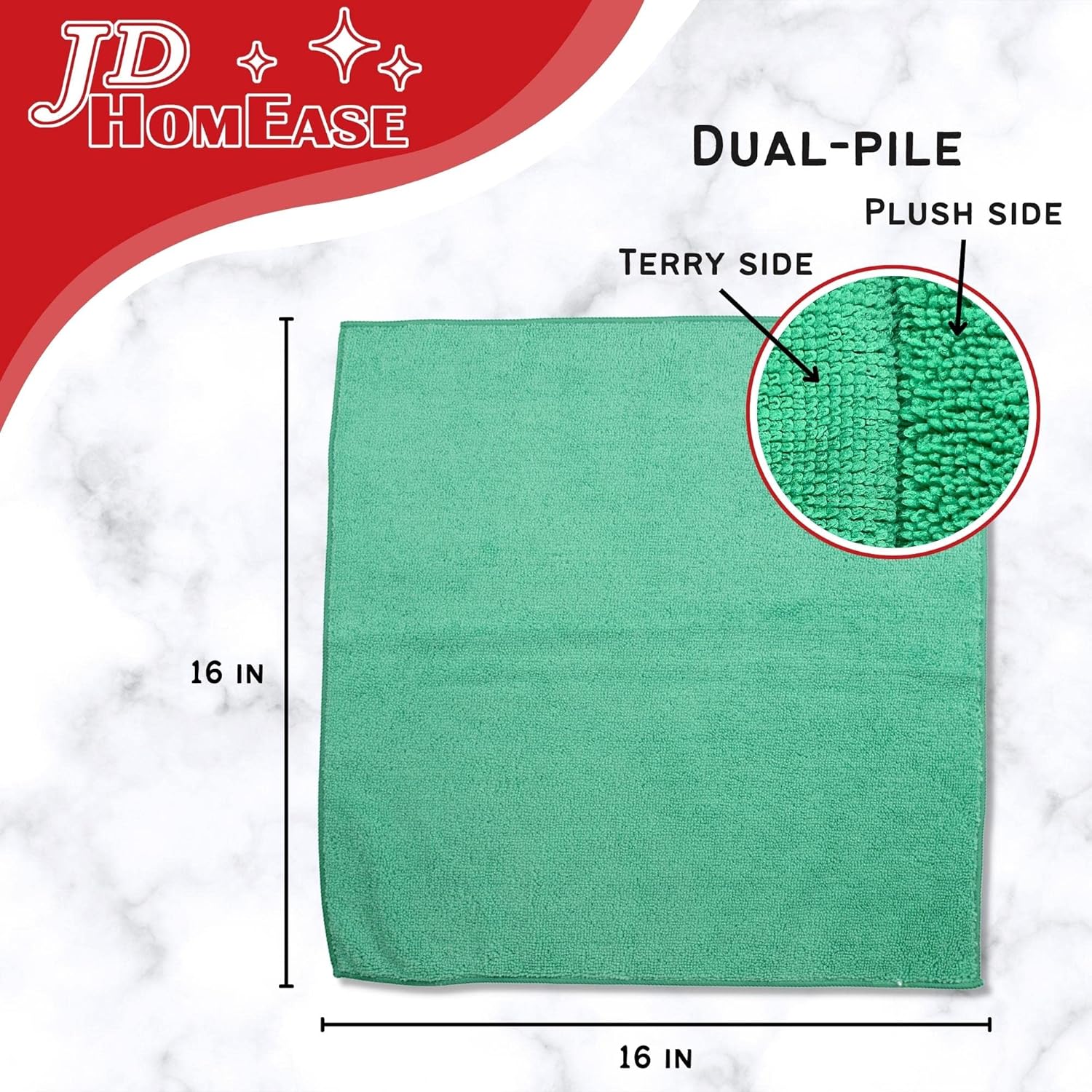 Microfiber Cleaning Cloths,24 Pack, 16"x16", All-Purpose, Softer, Highly Absorbent, Lint-Free, Reusable, Washable Pro Towels, Green, for House, Kitchen, Bathroom, Car, Office