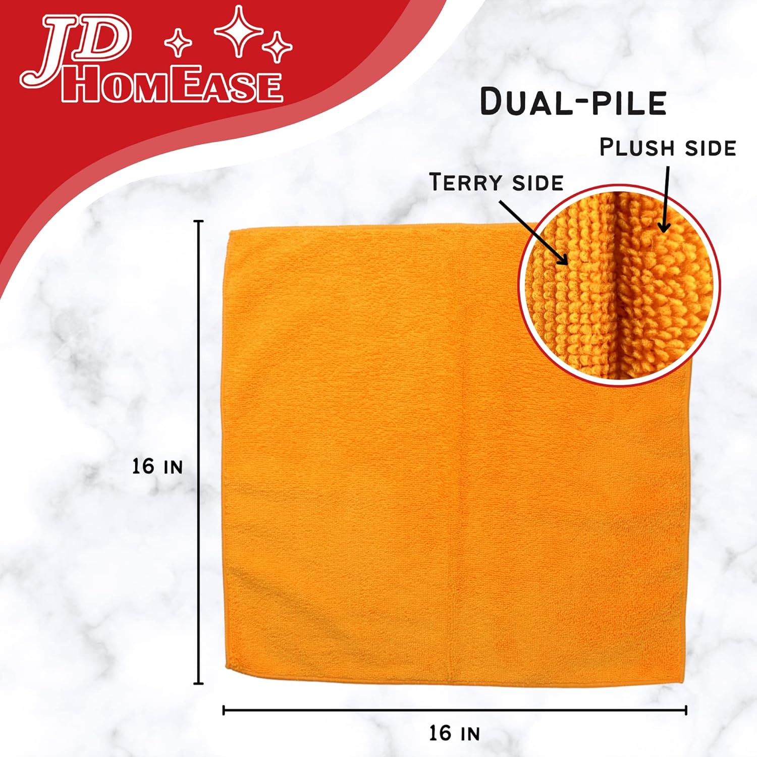 Microfiber Cleaning Cloths,12 Pack, 16"x16", All-Purpose, Softer, Highly Absorbent, Lint-Free, Reusable, Washable Pro Towels, Orange, for House, Kitchen, Bathroom, Car, Office