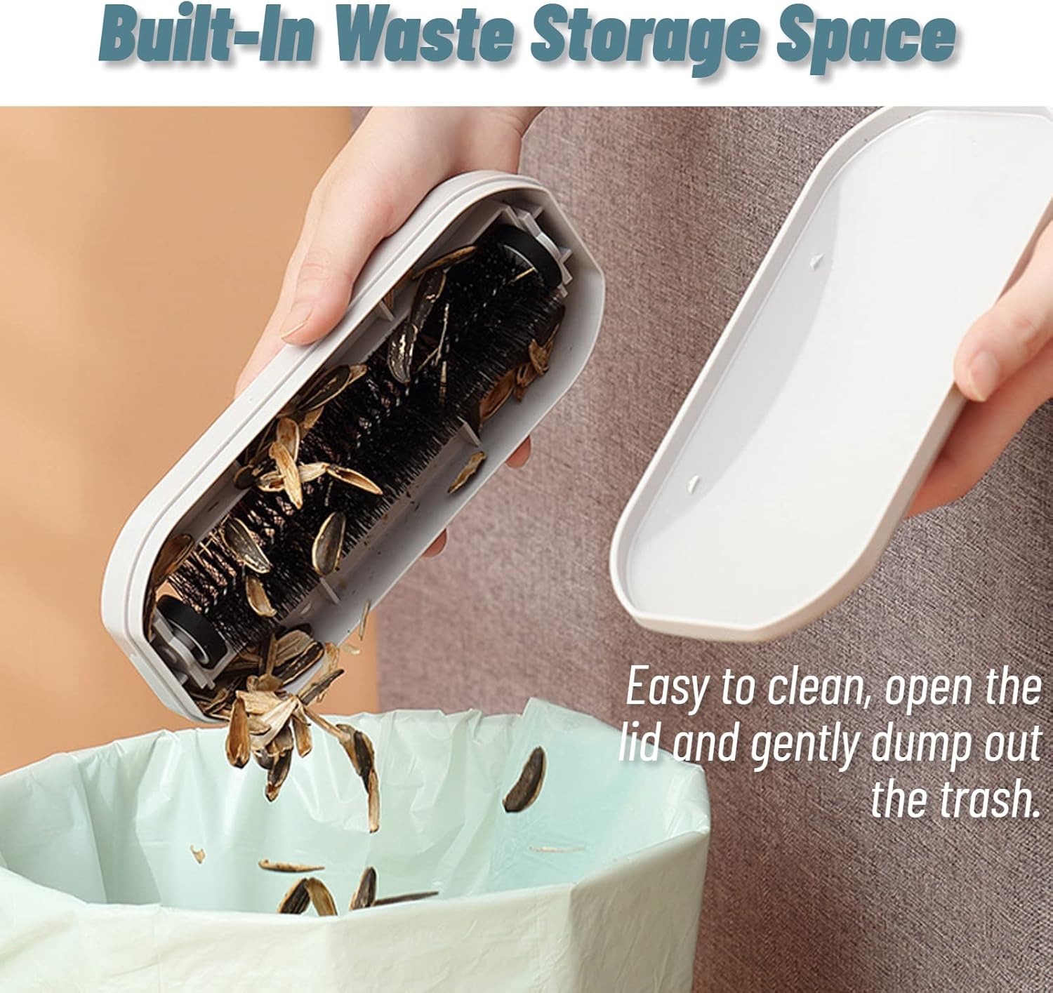 • 【TRASH COLLECTION】The table sweeper brush has built-in trash storage to easily collect and store dirt, pet hair, crumbs and more, so you don't have to clean crumbs off the table or by hand. Easy to clean, open the lid and gently dump out the trash.