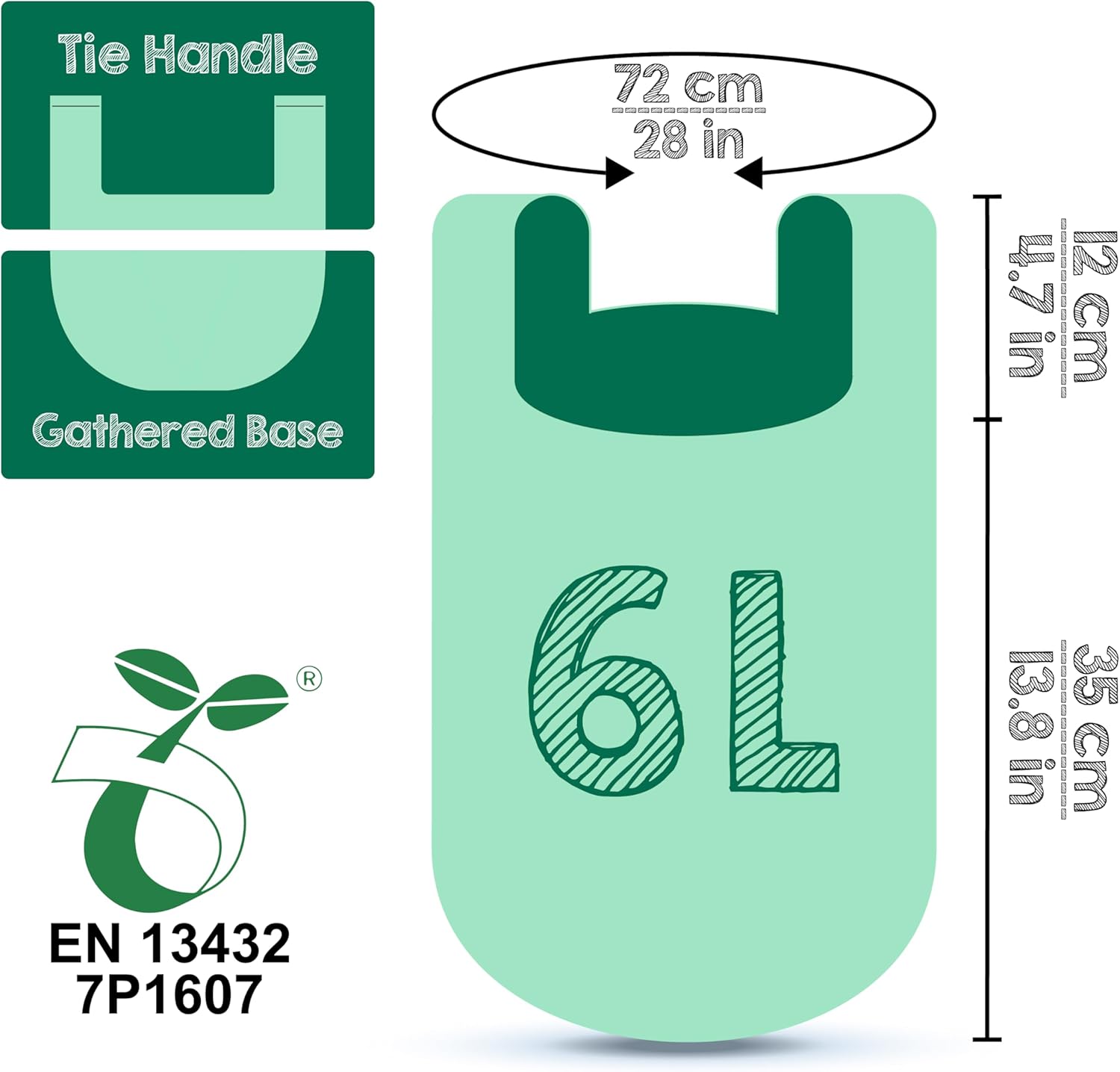 • Item Form : Compostable Trash Bags with Tie Handles