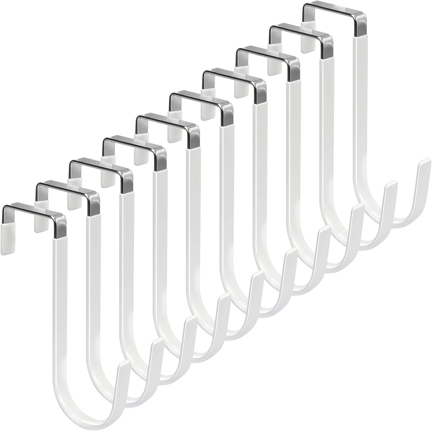 FYY Over The Door Hooks, 10 Pack Door Hangers Hooks with Rubber Prevent Scratches Heavy Duty Organizer Hooks for Living Room, Bathroom, Bedroom Hanging Clothes, Towels, Hats, Coats, Bags White
