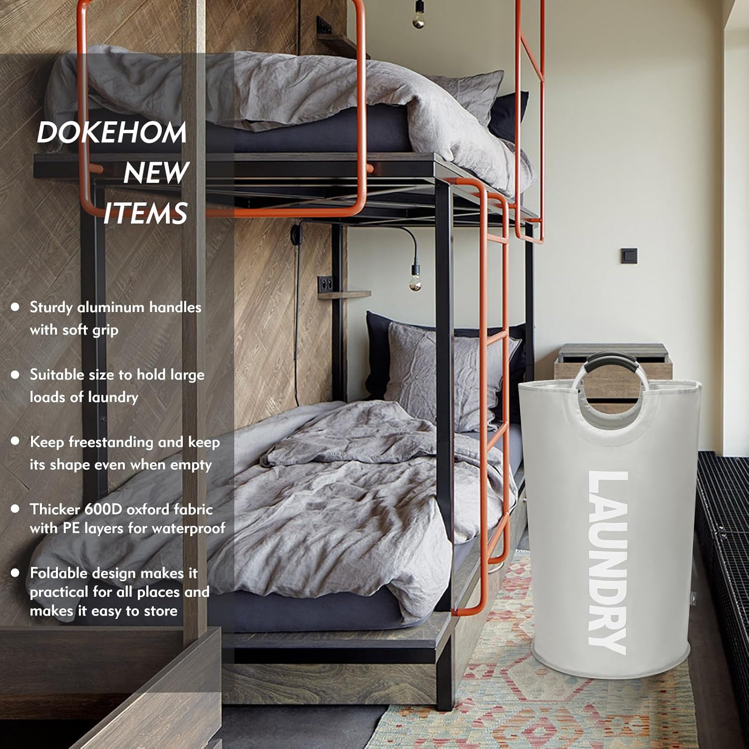DOKEHOM 90L Large Laundry Basket, Collapsible Laundry Bag, Freestanding Tall Clothes Hamper, Foldable Washing Bin (Grey)