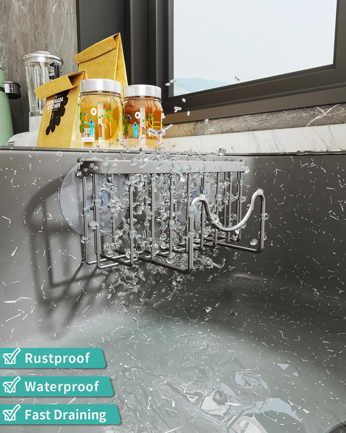 - [Stainless Steel]: Constructed of 304 stainless steel with with a layer of anti rust coating, Hapirm sponge holder for kitchen sink can effectively prevent rust even in wet conditions and has a long service life