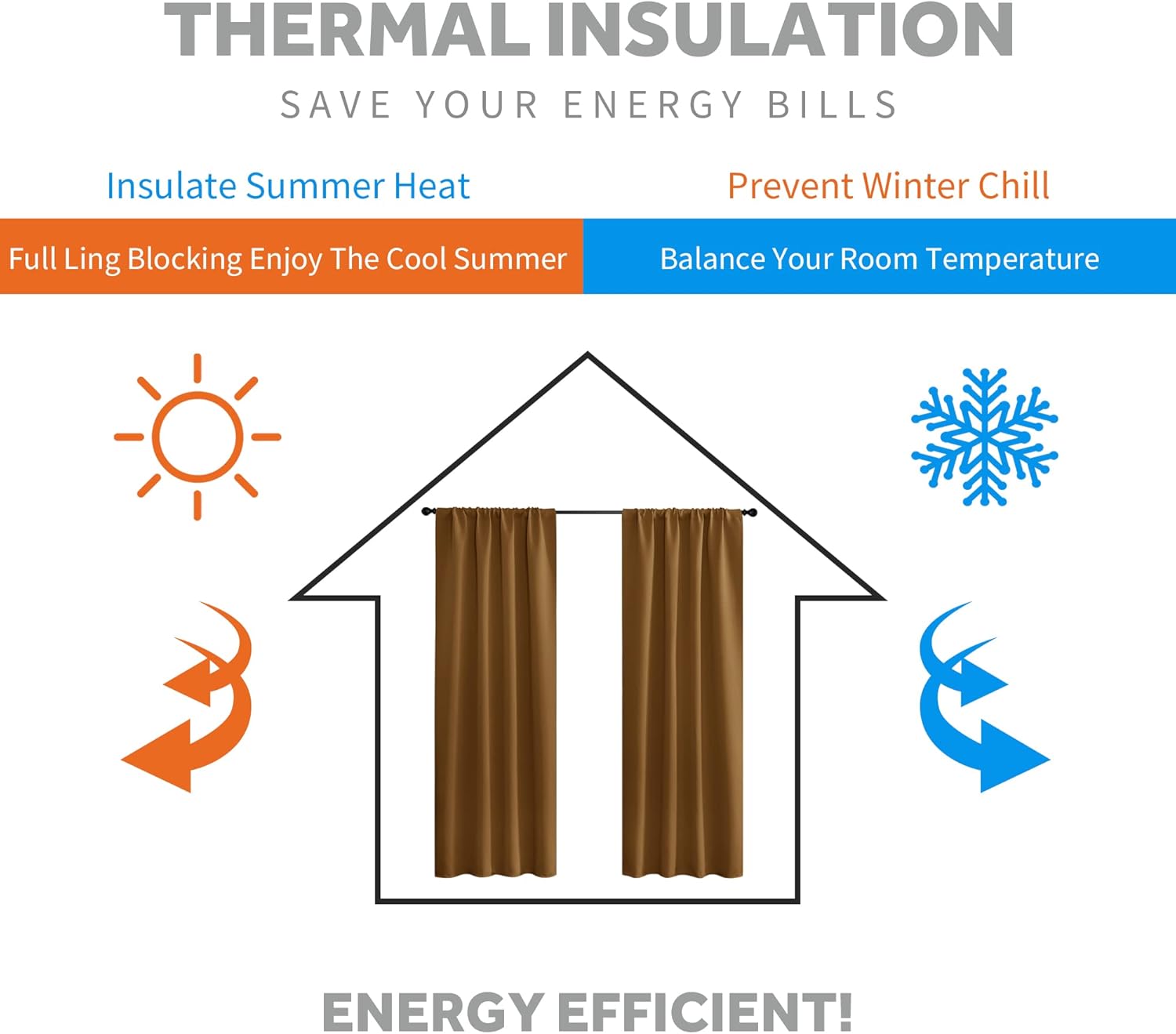 - LIGHT BLOCKING - Curtains block 85-95% sunlight and UV rays (Dark color works better) for maximum privacy and undisturbed sleep. Thermal property of the blackout curtains ensure that the room temperature is regulated. Protect your indoor furniture from directly exposing to the sun.