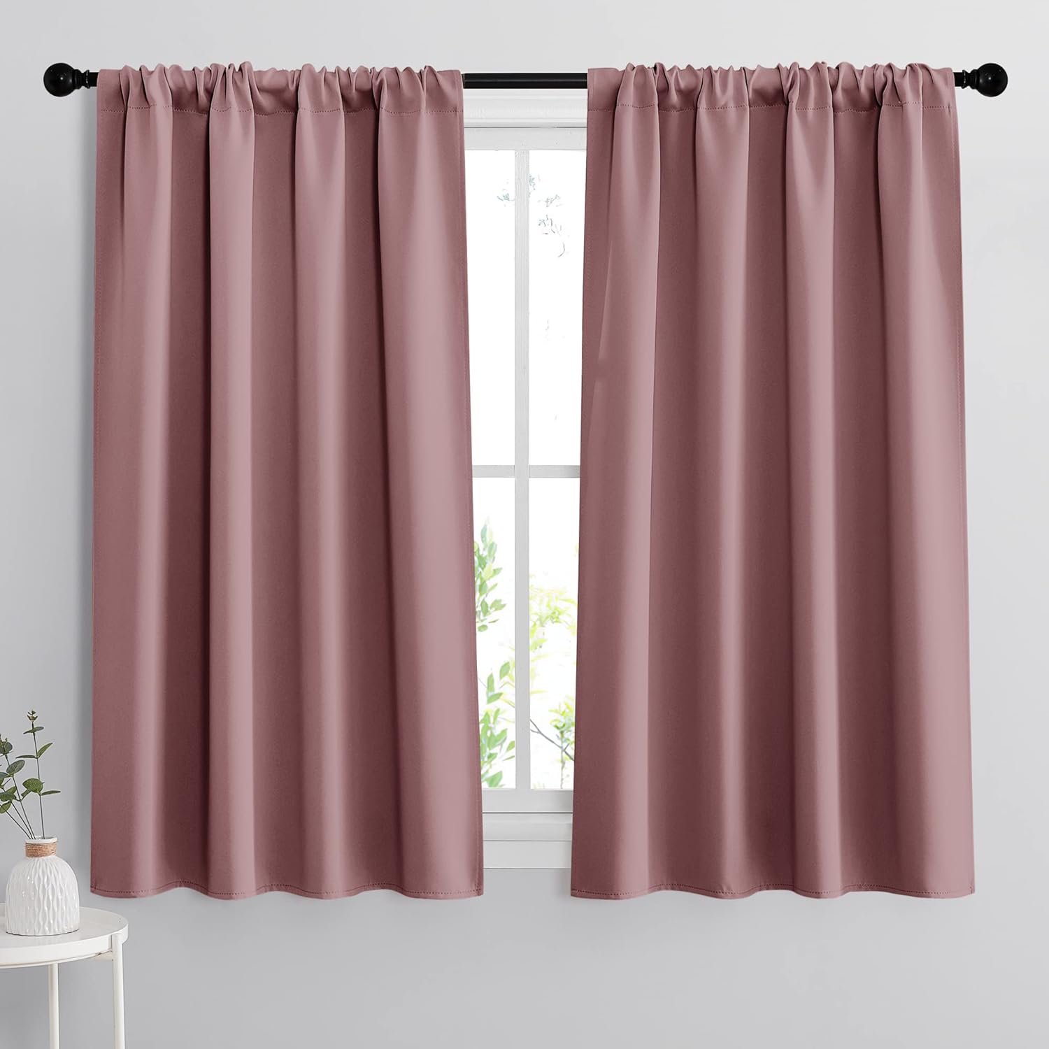 RYB HOME Bedroom Curtains Blackout - Light Block Energy Efficiency Small Window Treatment Drapes for Kitchen Dining Baby Nursery Morden Decor, W 42 x L 54 inch, Dusty Rose, 2 Panels