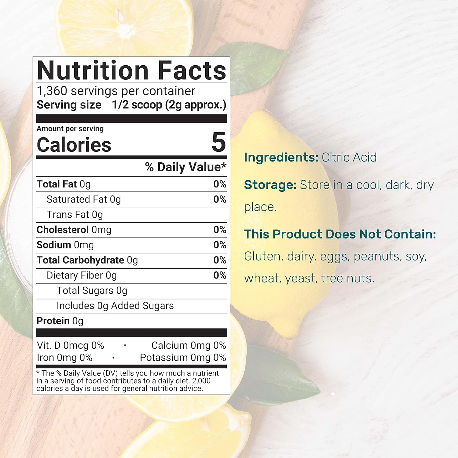 - Dosage & Servings: With only ½ a scoop needed per serving, the 6-pound pouch provides an impressive 1,360-day supply, making it an excellent long-term solution for all your citric acid needs.