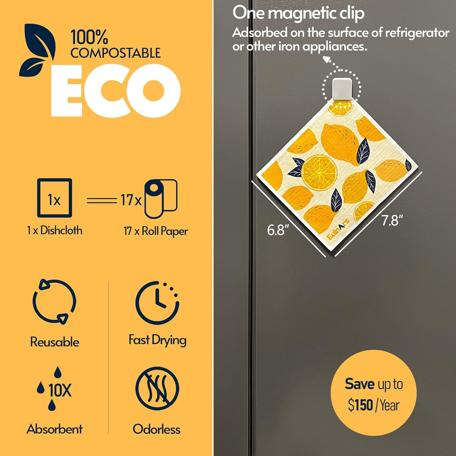 - Washable and Resuable: Tested to be reusable up to 200 times, our swedish dish rags for washing dishes can replace up to 17 rolls of paper towels. Affordable, durable, and easy to care for, they offer a long-lasting alternative to disposable paper towels