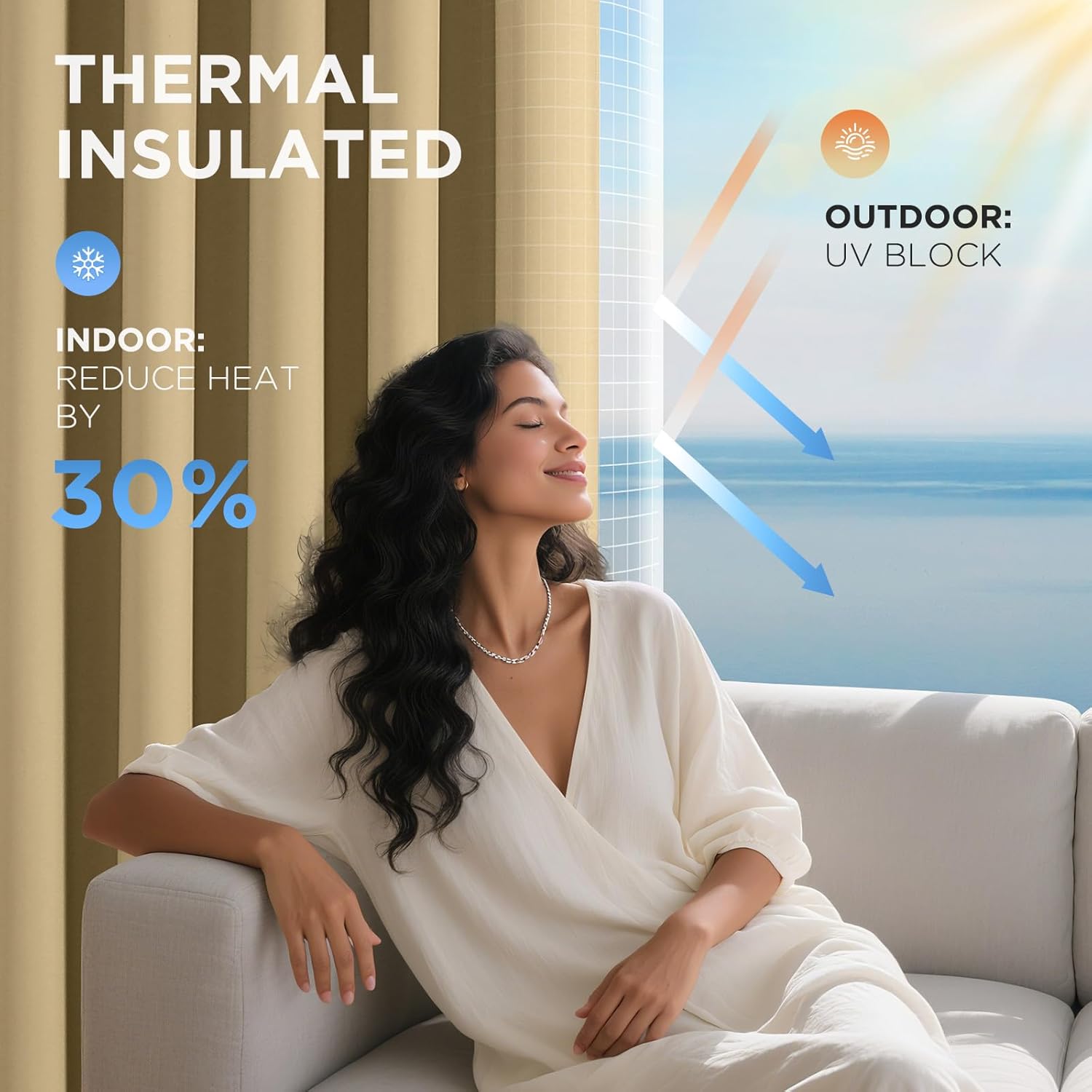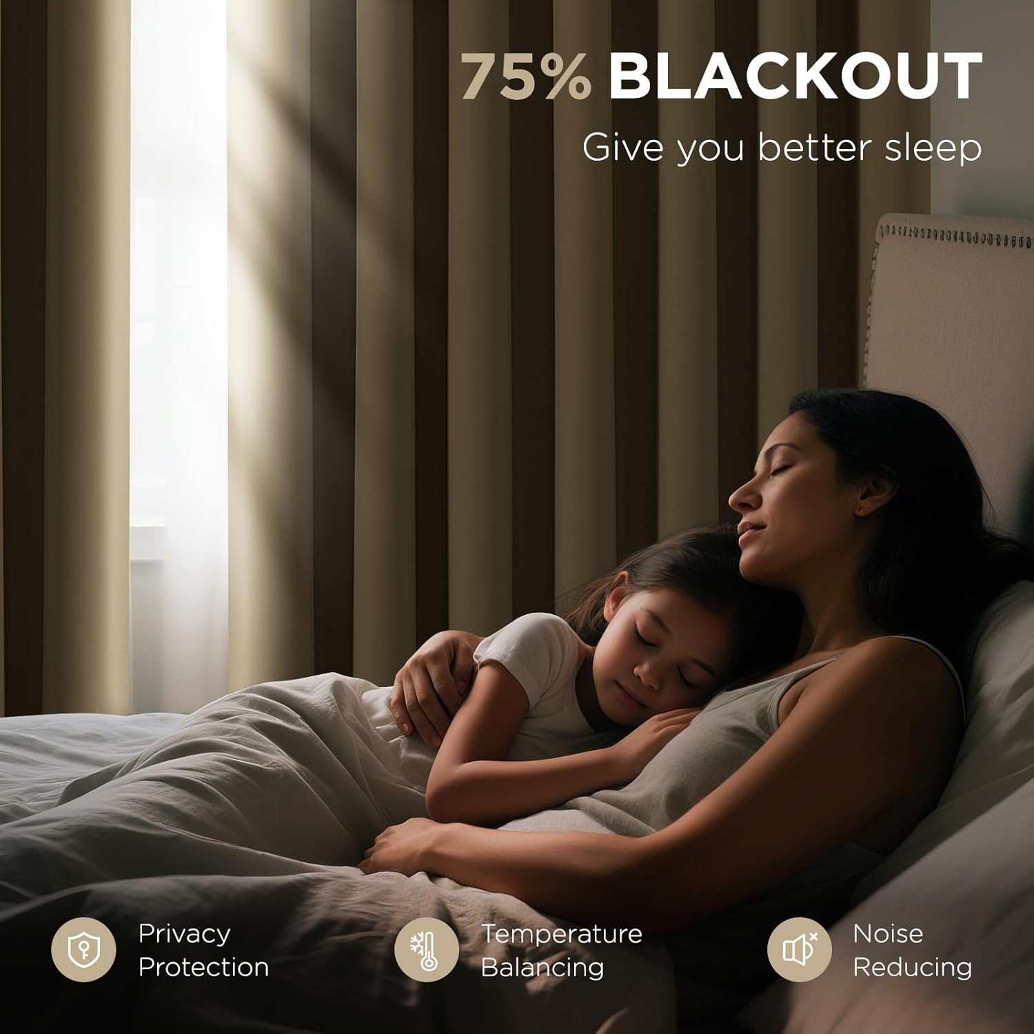 - 【Blackout Performance】Your go-to choice for adjusting indoor light! These curtains block over 75% of sunlight and outdoor glare, creating a cozier atmosphere in bedrooms, living rooms, and more. They also provide excellent privacy protection for your home. Pro Tip: Darker-colored curtains offer even better blackout effects.