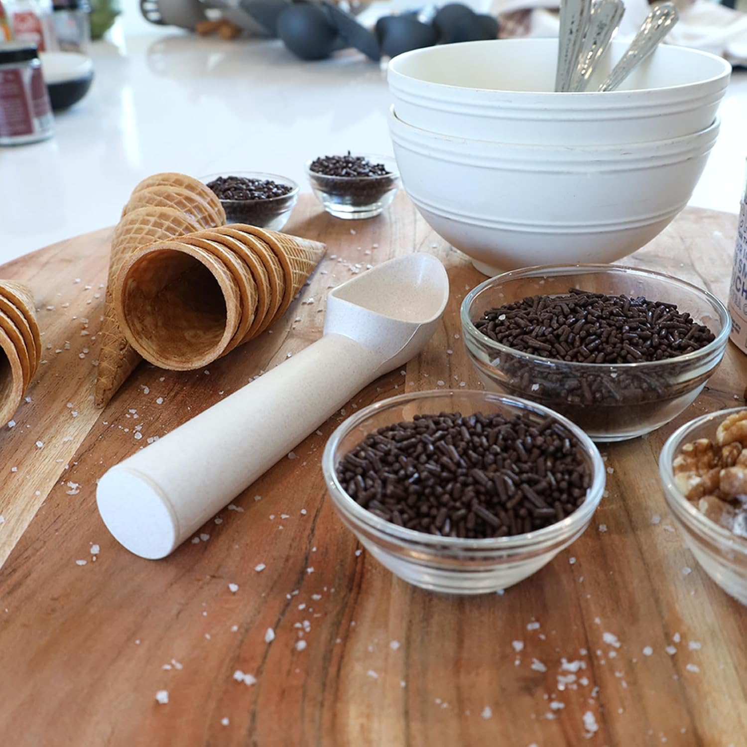 - 4PC KITCHEN UTENSILS: Do some of your old kitchen utensils need an upgrade? Why not make it a sustainable one? Beille’s four-pack of kitchen gadgets include an ice cream scoop, cheese grater, vegetable peeler, and pizza cutter, all made from wheat straw in a modern and fresh cream-speckled matte finish