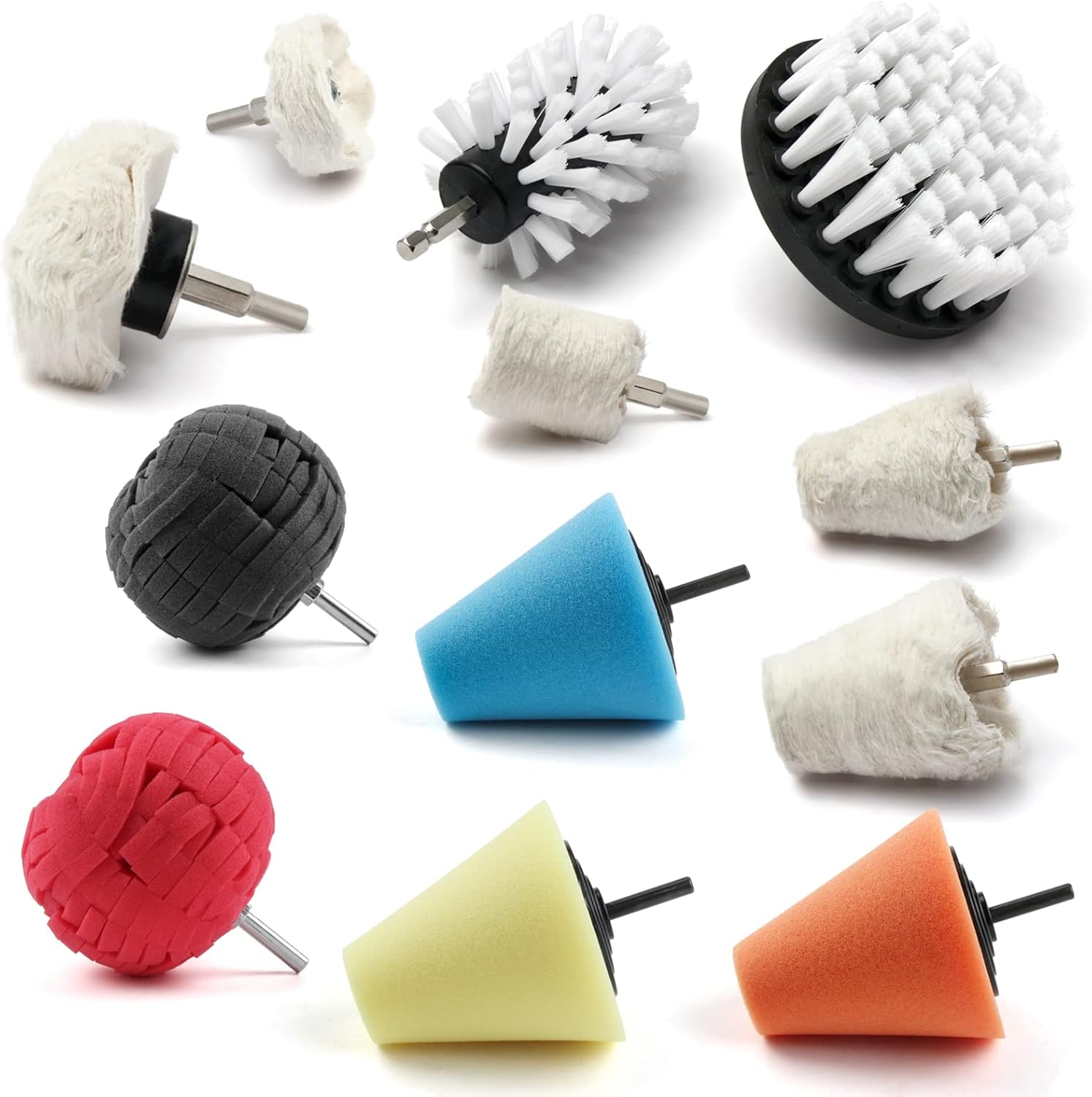 - BETTER KITS: 12 Pack Buffing Wheel Polishing Ball Kit, 5 sponges with different densities + 5 different shape and size buffing wheel for drill + 2 white brushes. Perfect for different polishing or waxing work.