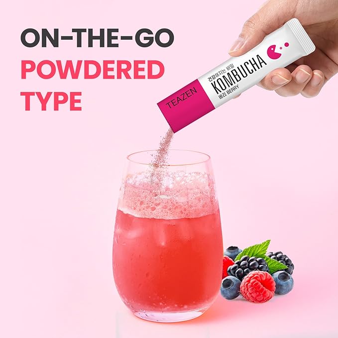 - PORTABLE & SOLUBLE: ON-THE-GO Packet Type Kombucha powder product ensures no worries about the container getting crushed, broken, or leaking. Enjoy it easily and lightly whether you're working out, at the office, or in school, anytime, anywhere. Simply drop one TEAZEN Kombucha packet into cold water (about 8.5oz or 250ml) and mix. TEAZEN Kombucha dissolves in 3 seconds. Very simple and convenient to easily get into the habit of drinking Kombucha.