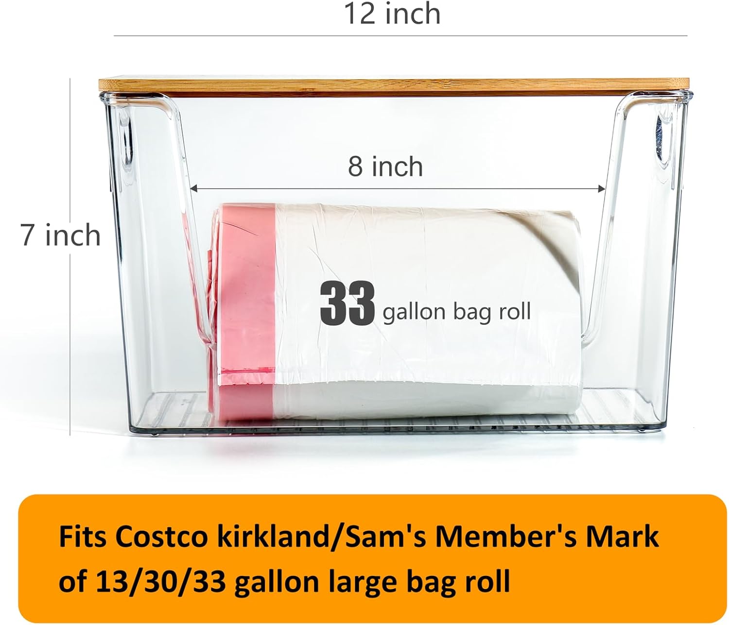 2 Pack Trash Bag Holder Dispenser, Extra Large Garbage Bags Holder, Stackable Trash Bag Holder with Bamboo Top for Laundry Room & Under Sink