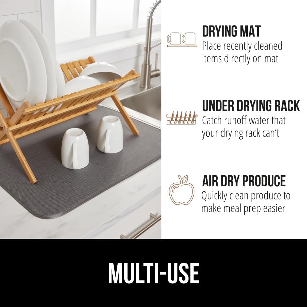 GORILLA GRIP Ultra Water Absorbent Microfiber Dish Drying Mat, 18x24, Quick Dry Thick Mesh, Slip Resistant Pad for Sink Dishes or Under Rack, Kitchen Counter Accessories, Machine Wash Mats, Gray