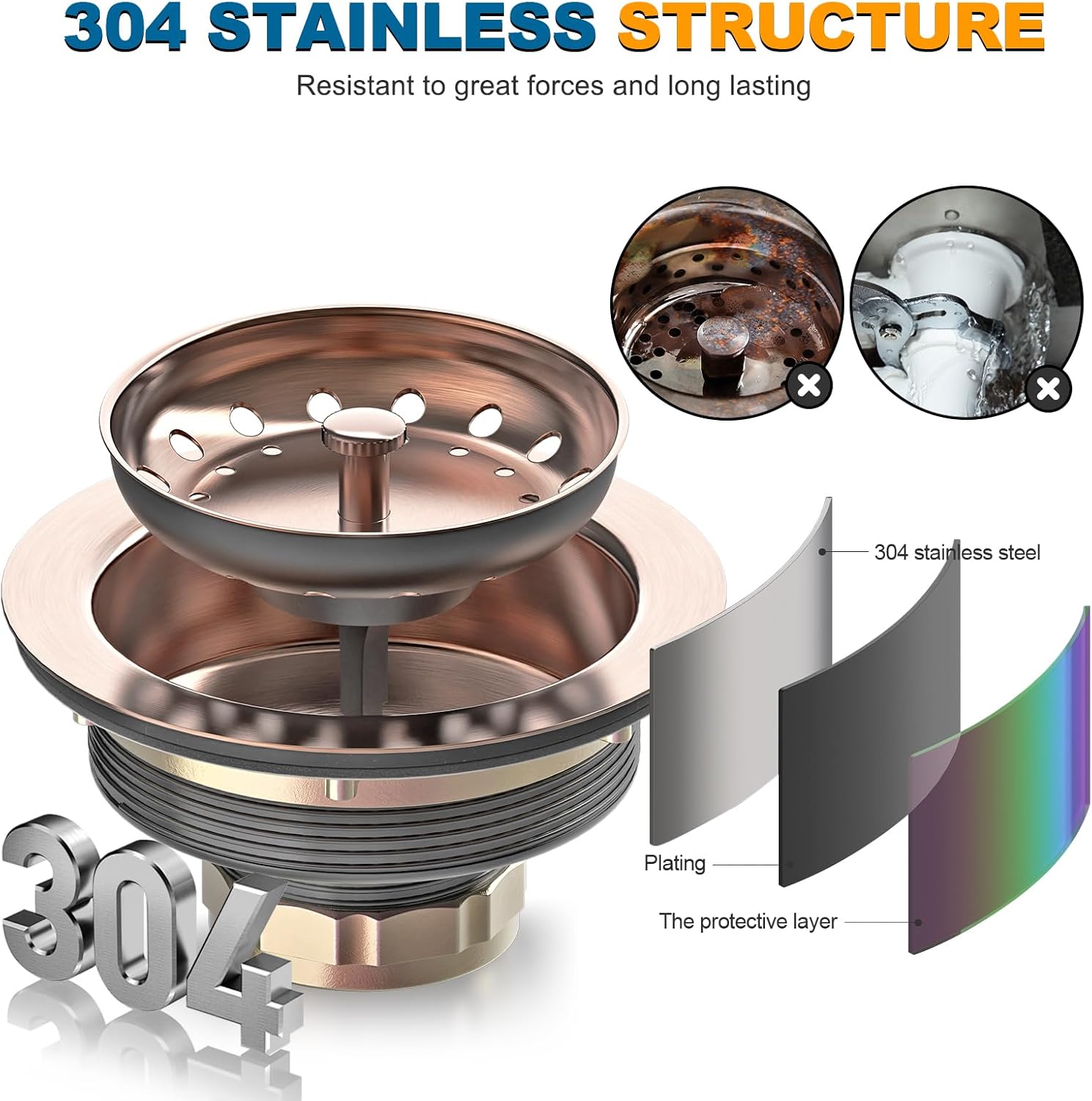 - BUILT TO LAST -- Kitchen drain assembly is made of 304 stainless steel, which is durable, rust and corrosion resistant. Perfectly fits most US home and commercial kitchen sinks with a 3.5" drain hole and supports up to 0.43" sink thickness