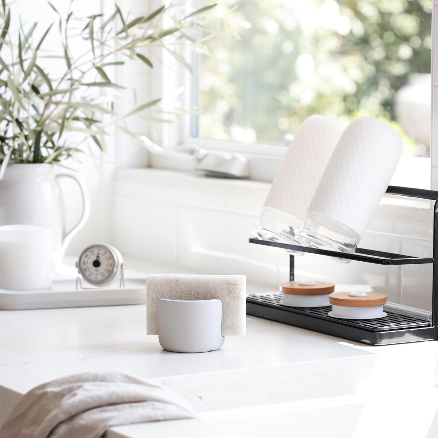 - Modern Sink Organizer: Upgrade your sink setup with a minimalist stone sponge holder. Its sleek design blends into any space—perfect as a kitchen sink organizer for modern or farmhouse style kitchens.