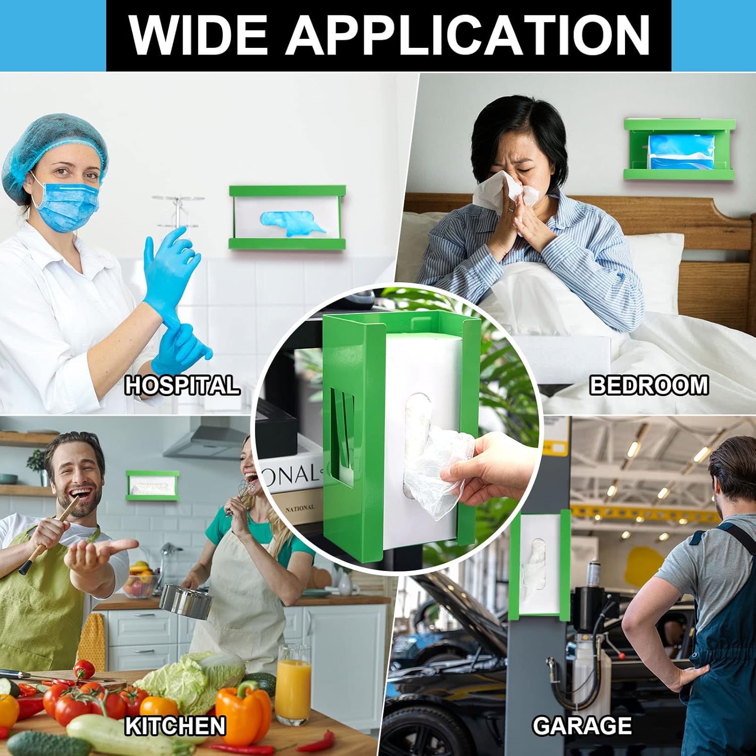 - Widely Applied: wall mounted glove dispenser can be installed on refrigerators, tool boxes, garages, workshops, offices, kitchens and hospitals to hold towels, wipes, paper tissue boxes, which brings large convenience to your life.This product contains magnets. Keep away from children and pets