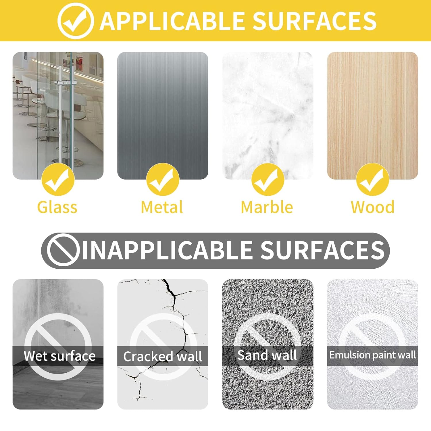 - MULTIPURPOSE - Two sided tape is applicable to carpets, area rugs, runners, fridge, photo frames, nameplates, sofa cushions, doormats, car mats, poster etc. Suitable for surfaces like hardwood, tile, glass, plastic, concrete etc. It best performances on sticking items horizontally. Long-term holding heavy object vertically is not recommended. Holding items vertically requires more tapes, and ensure there’s enough bonding area. Do not use this tape to hold a cylindrical product vertically.