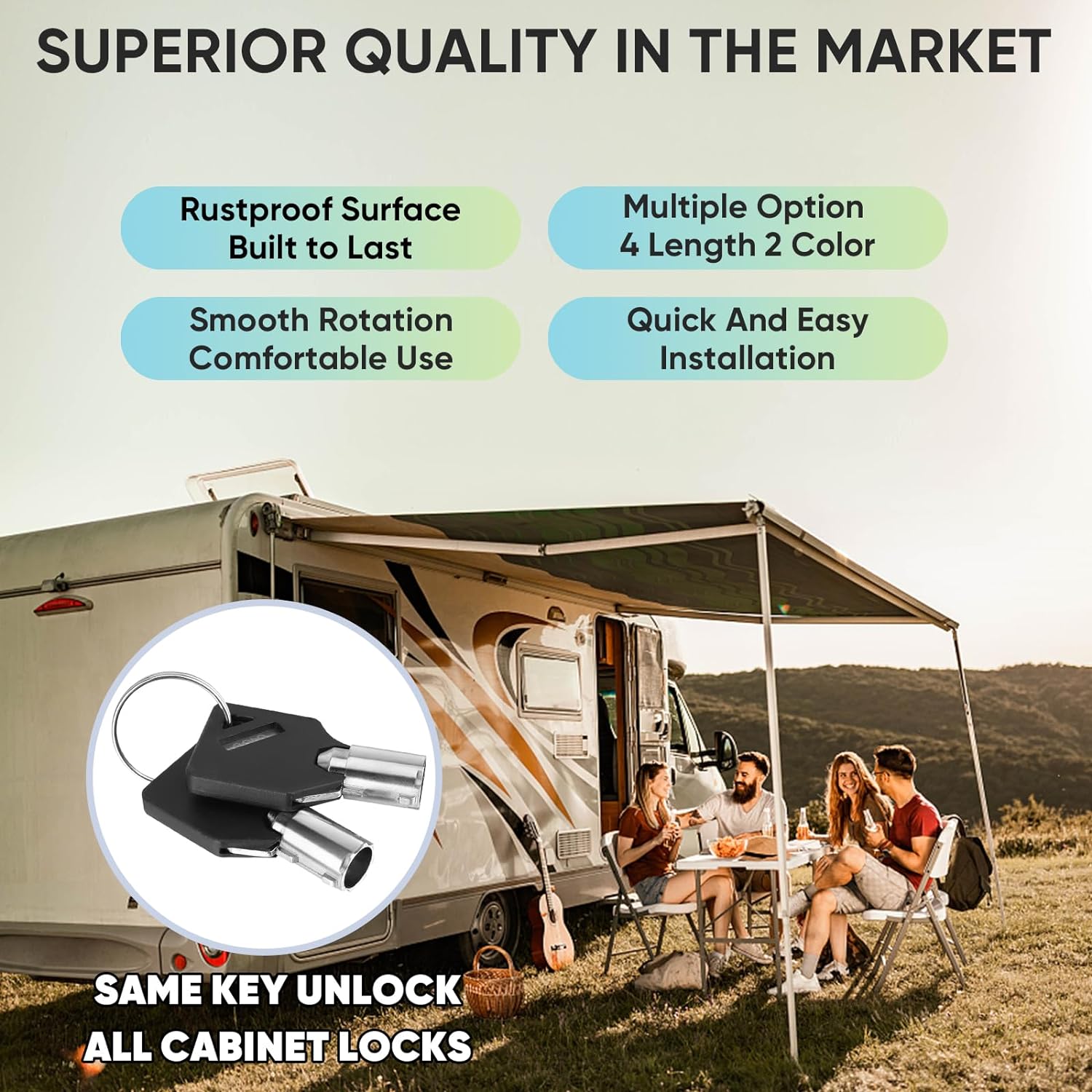 - [PREMIUM QUALITY HARDWARE] The RV Lock Cabinet Locks are made of premium metal and more secure tubular cam lock keys, along with waterproofing features. Keep your valuables safe and protected, and built to last in various weather conditions.