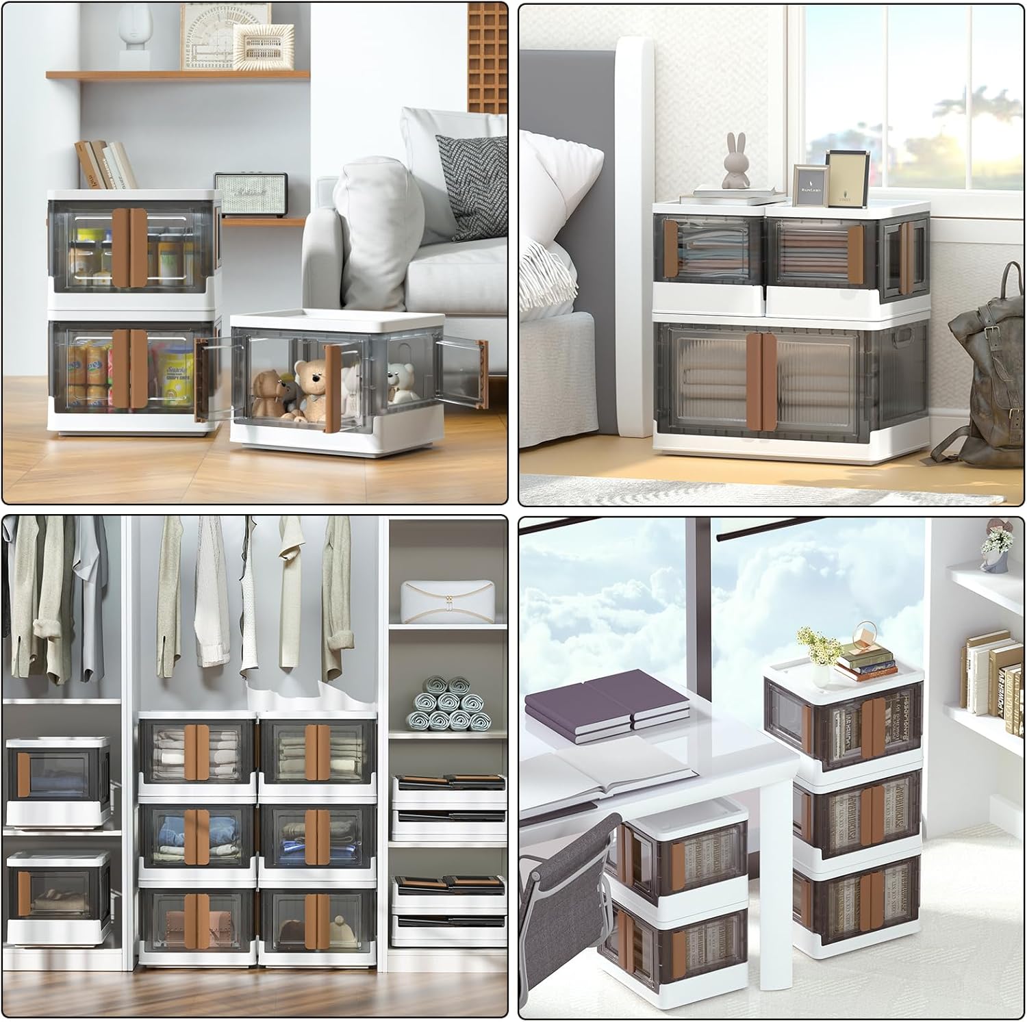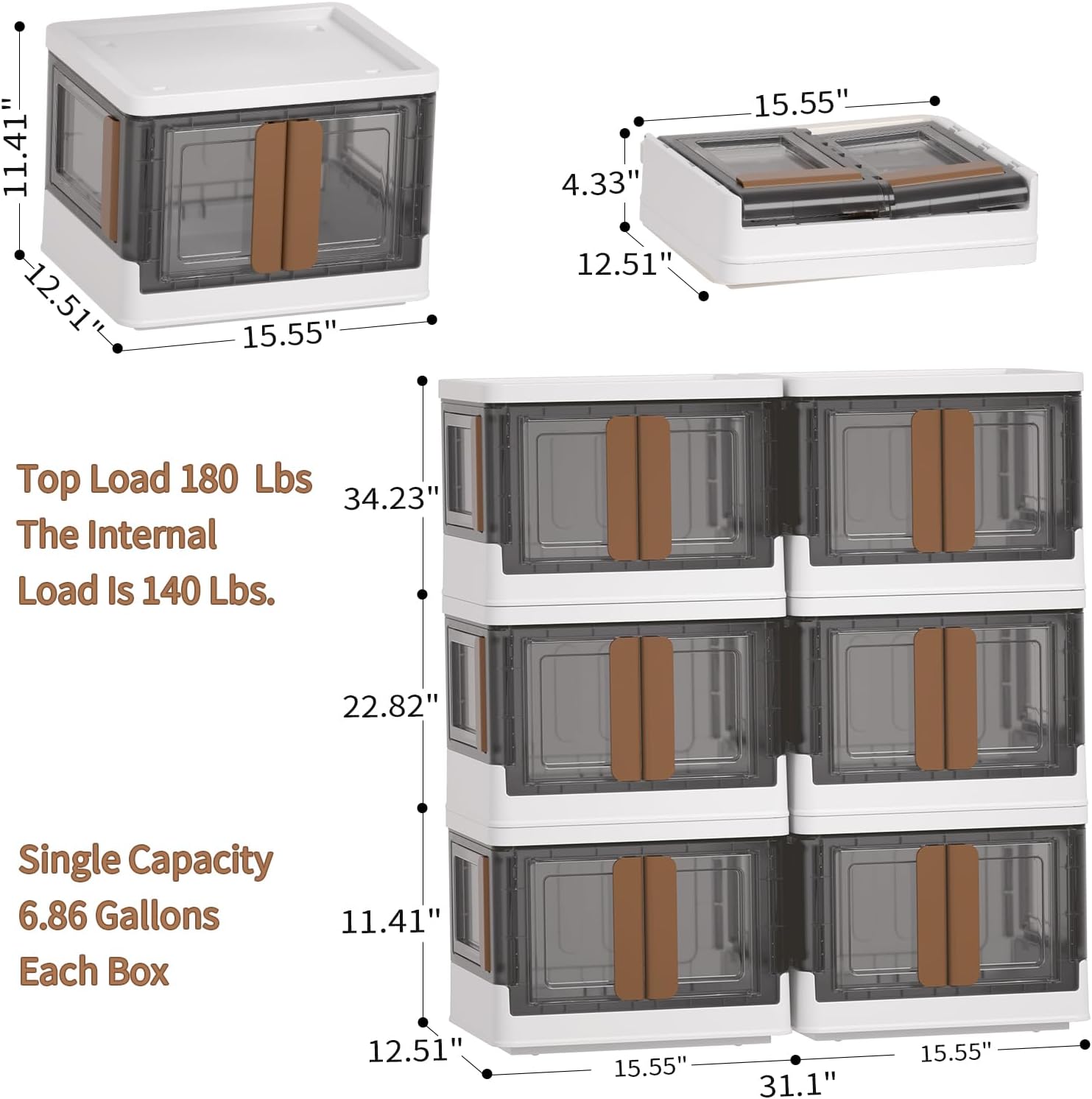 HAIXIN Folding Storage Bins with Left Doors and Right Doors Opening, 6.86 Gal Bookcase, Stackable Storage Cabinet, Plastic Shelves Organizer, Space-Saver Pantry Storage, Room Organization, 6 Pack
